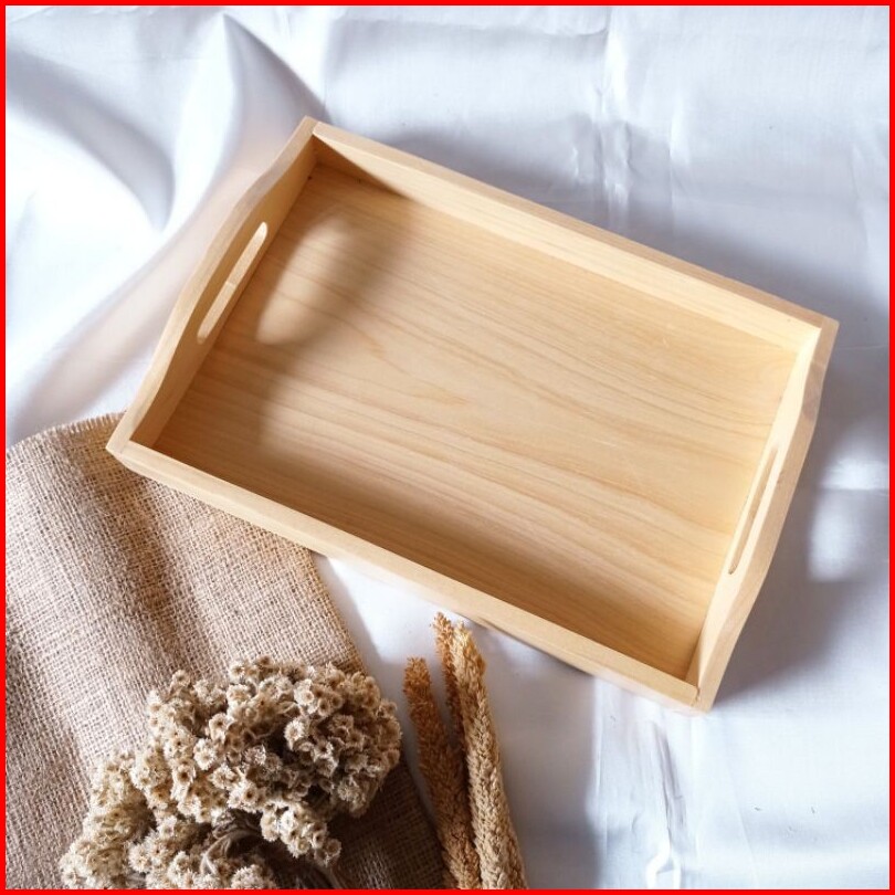 Nampan Kayu Pinus Ukuran Sedang Tray Baki Kayu Pinus Tempat Seserahan Aesthetic
