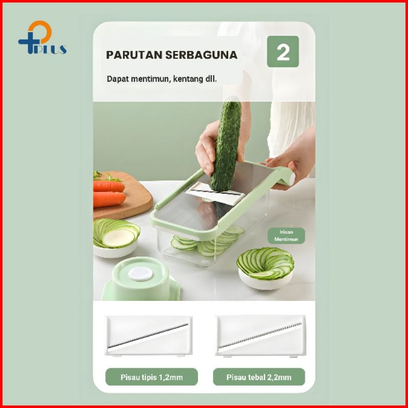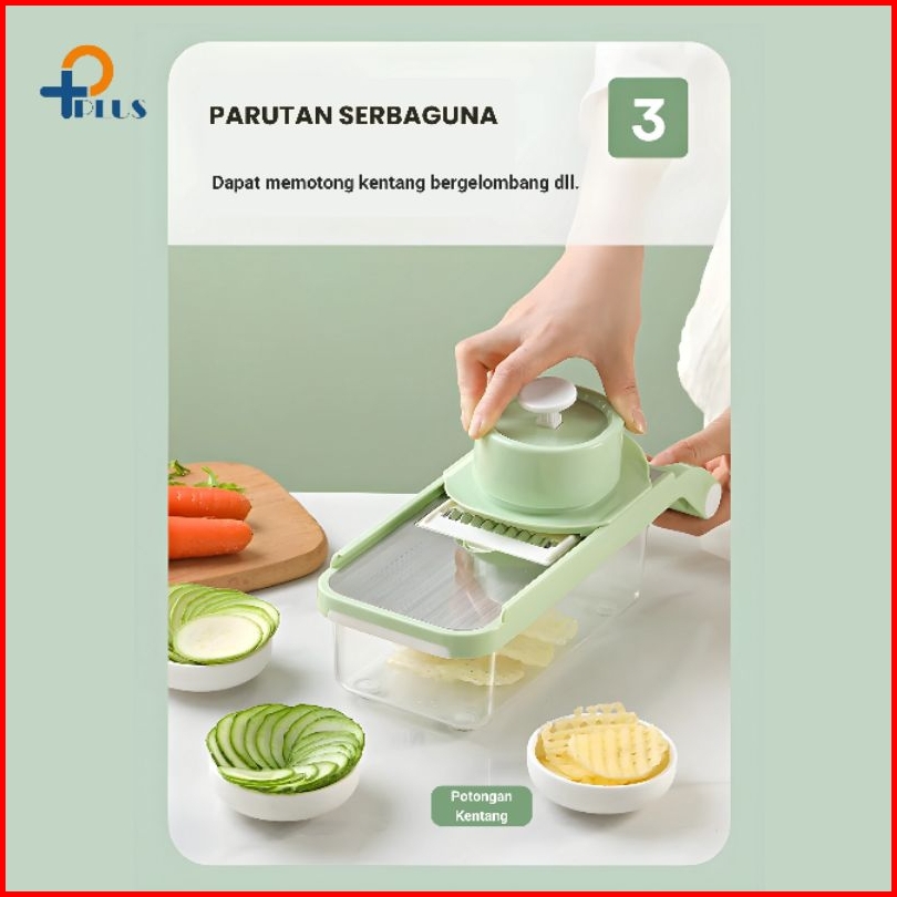 Pplus Parutan Stainless Potong Iris Sayur Buah Serbaguna Premium Vegetable Cutter 6 Pisau Wadah Transparan Slicer Stainl