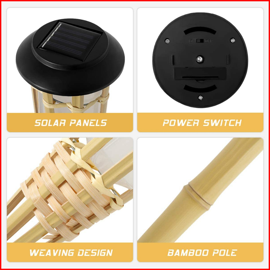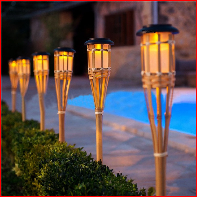 Lampu Led Bambu Solar Outdoor Torch Flame Lamp Lampu Led Taman Bentuk Api Obor Tenaga Surya Tahan Air Lampu Taman Api Ti