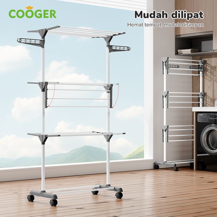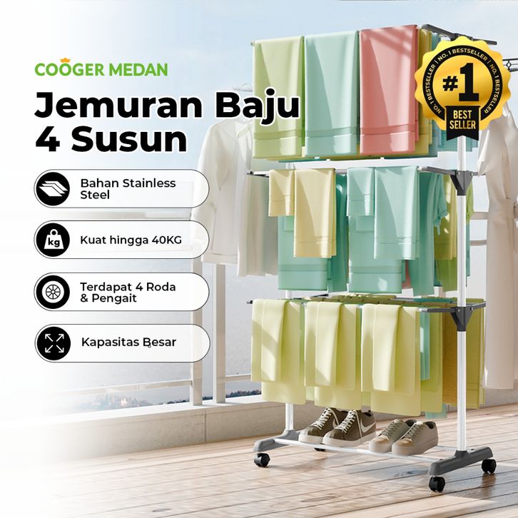 Jemuran Baju Lipat 4 Tingkat Stainless Steel dengan Gantungan dan Rak Pengering Sepatu - Drying Racks 4 Level