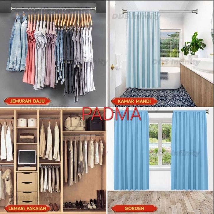 Tiang Hordeng STIANLEES flexsibel/Tiang Stainles Steel/Tiang jemuran kamar mandi/TIANG GORDENG PINTU