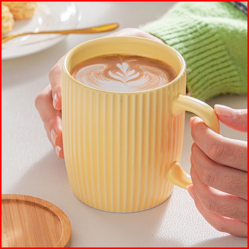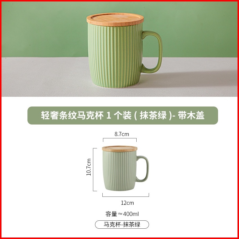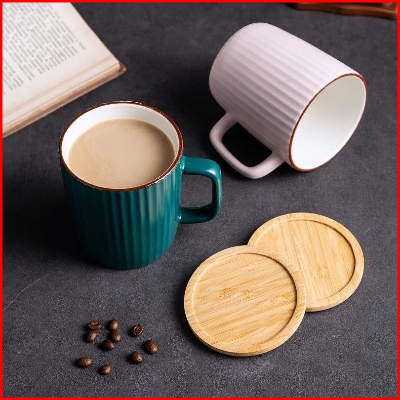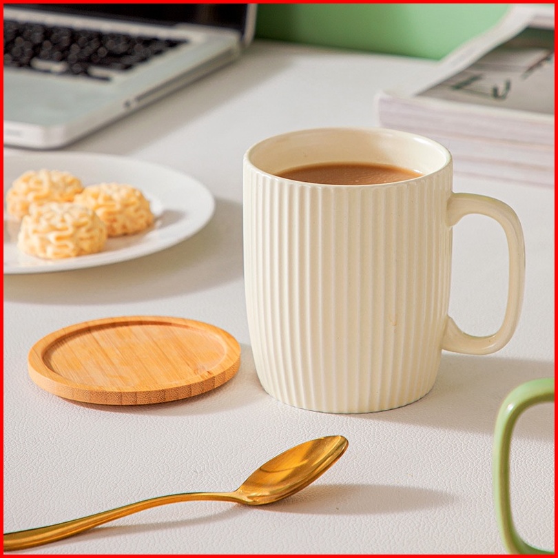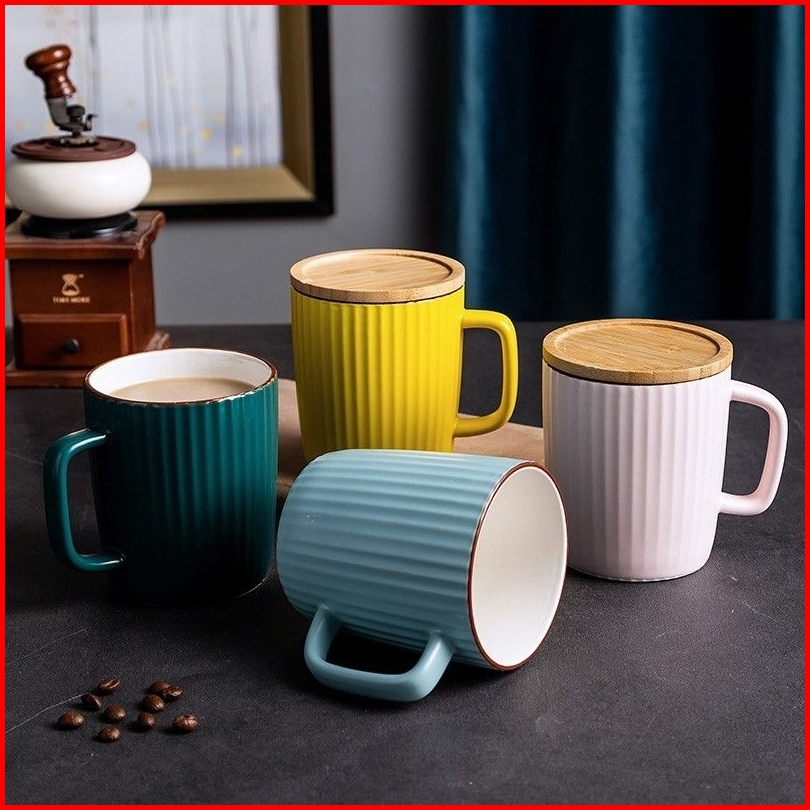 Mug Gelas Kopi Teh Susu Keramik Aesthetic 400ml Dengan Penutup Gelas Bambu