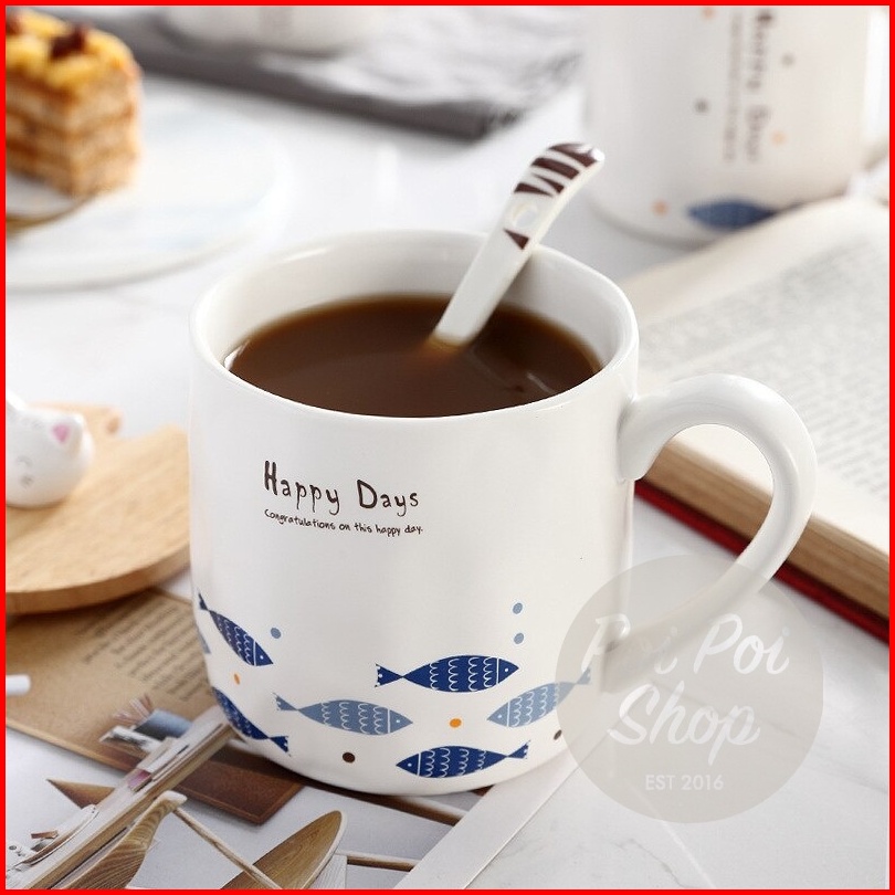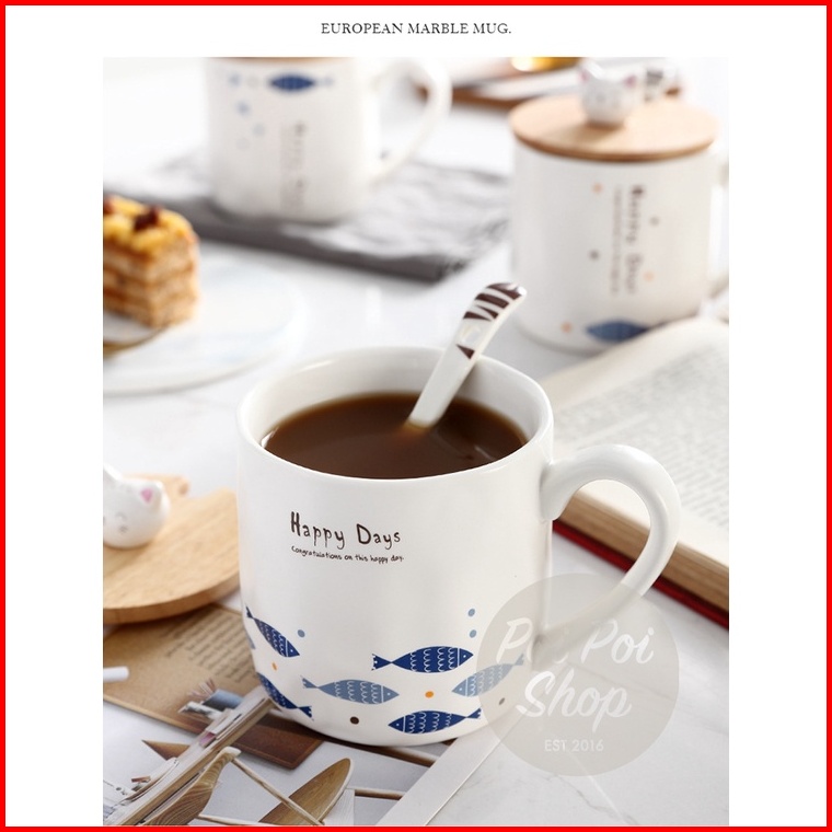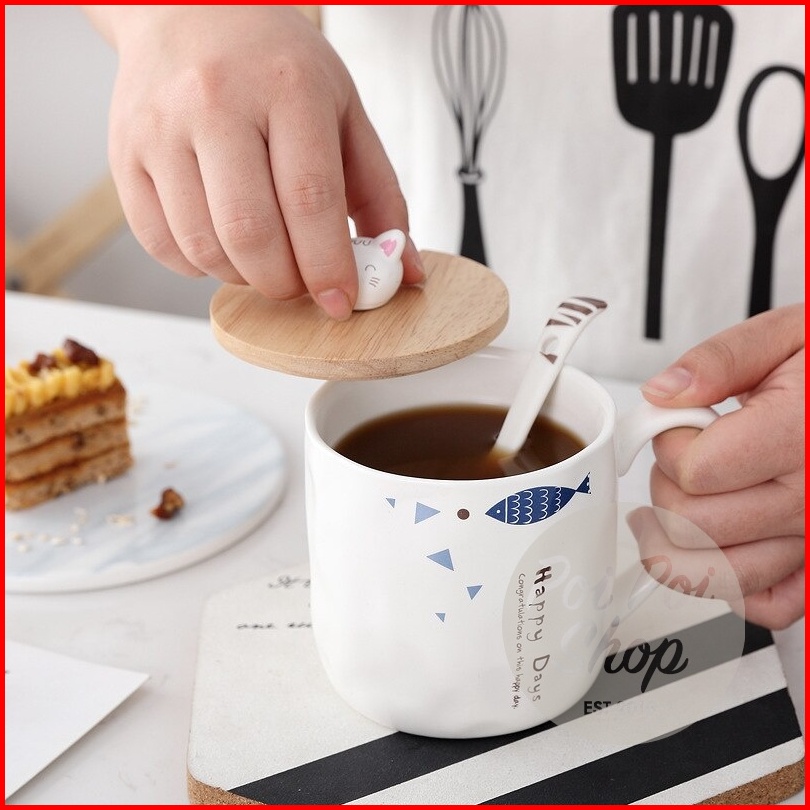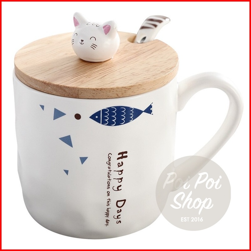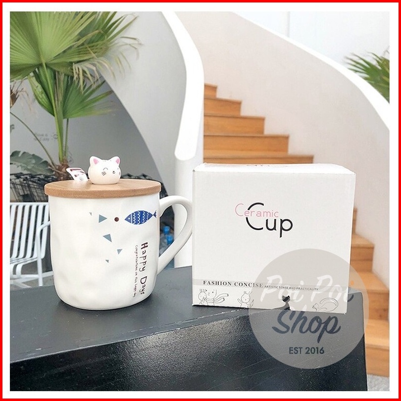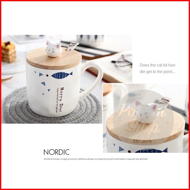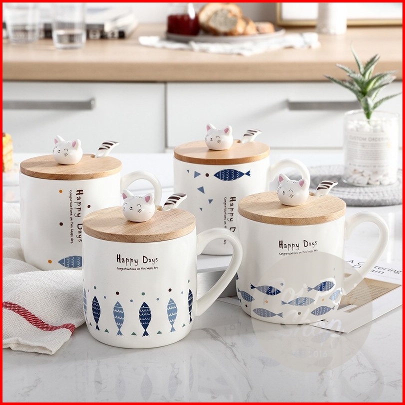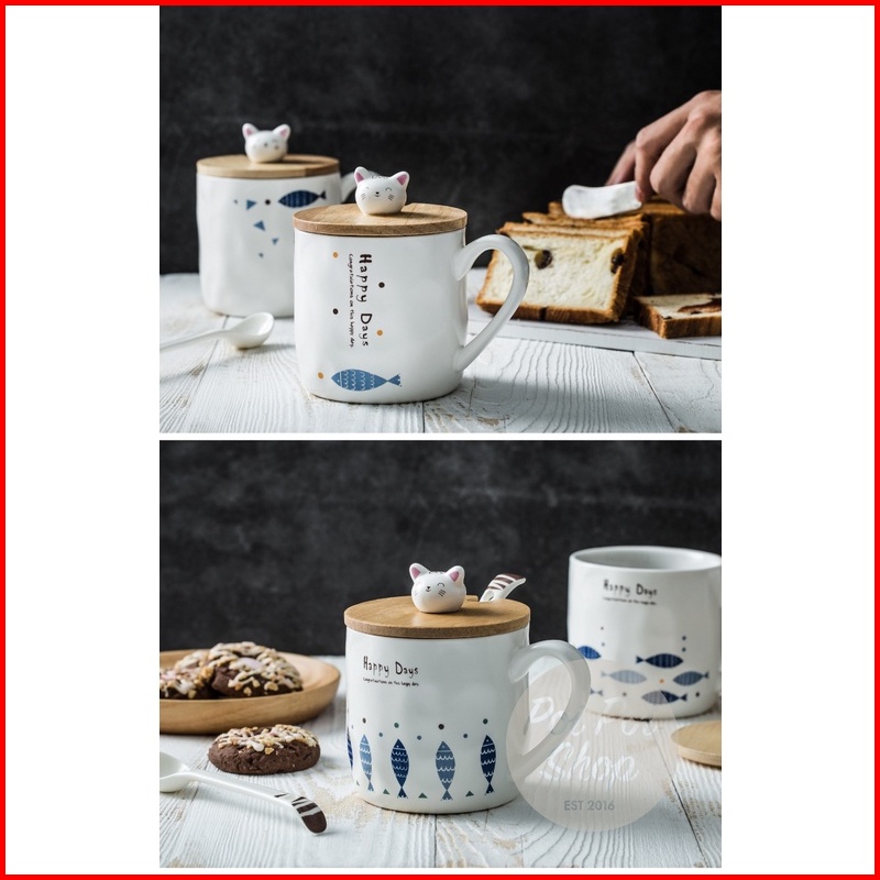 Cangkir Keramik Cats Happy Day Cup Gift Set Ceramic Mug 380 Ml Gelas Dengan Sendok Dan Tutup High Quality