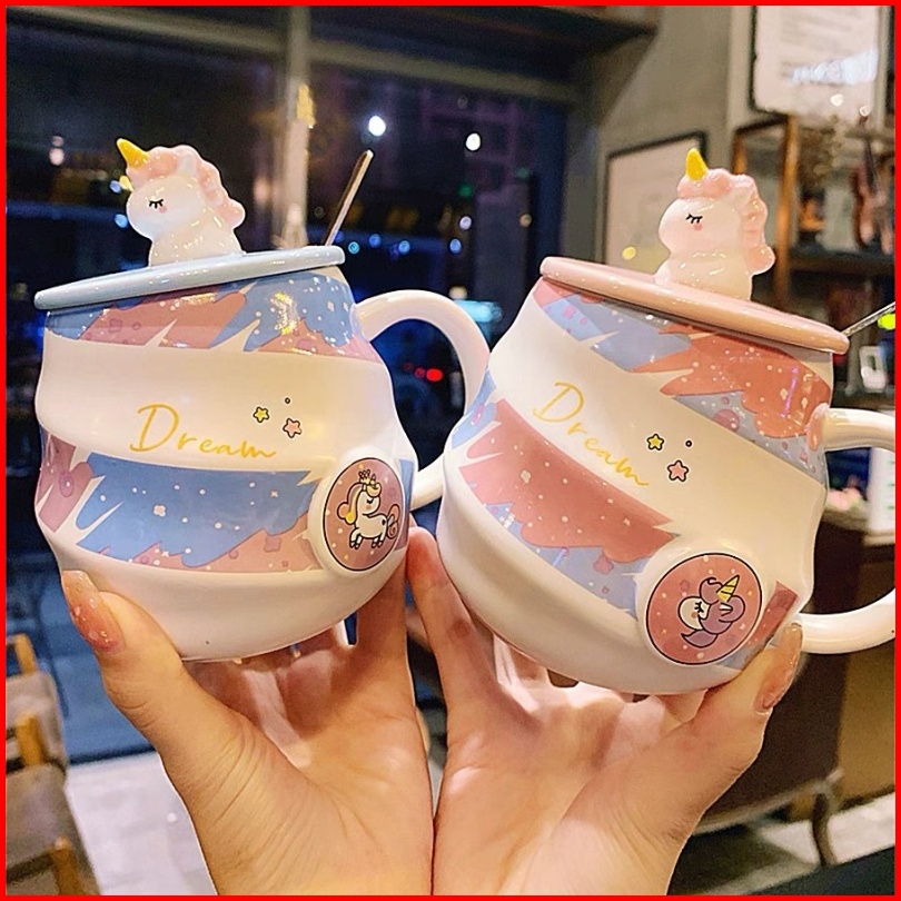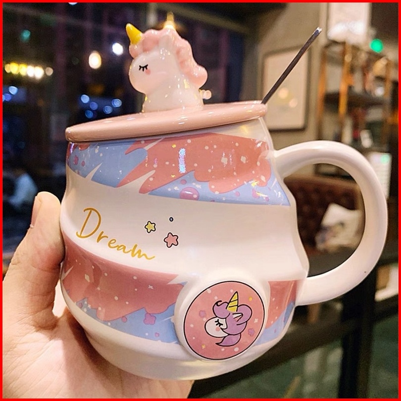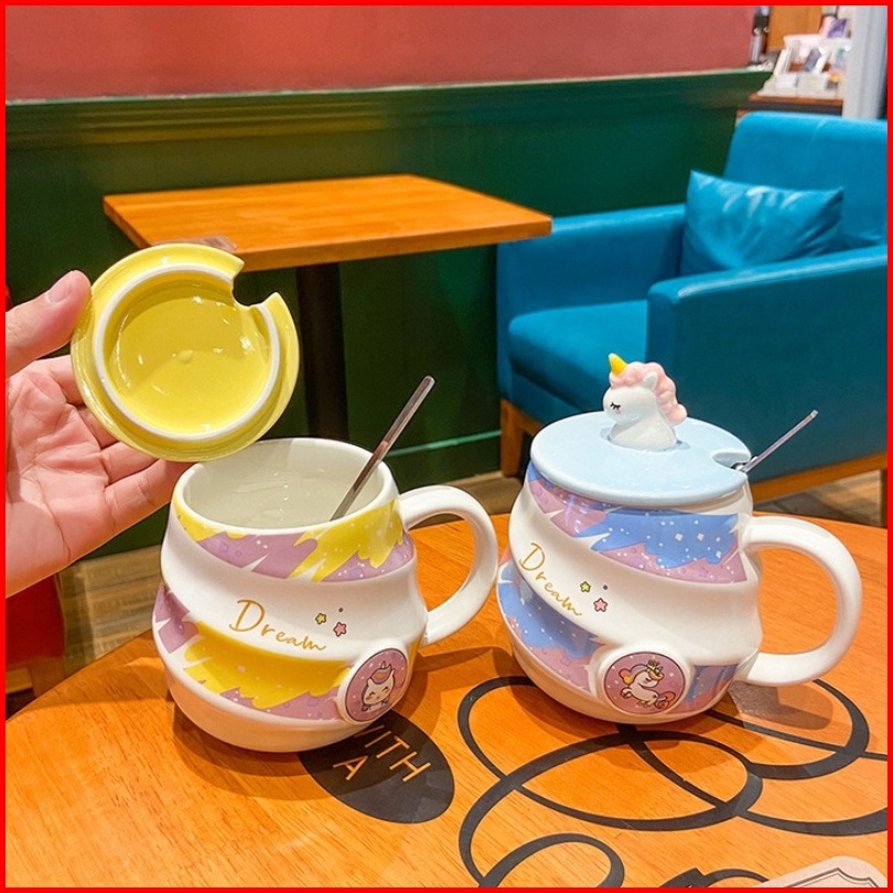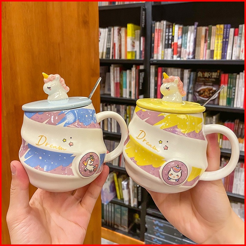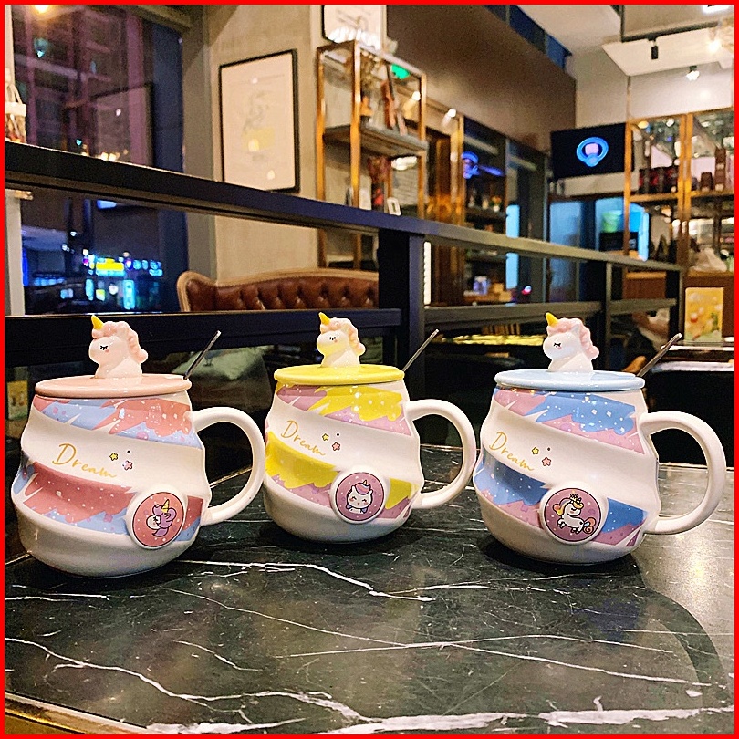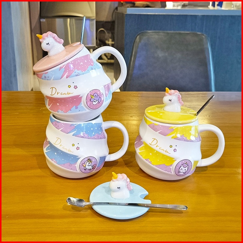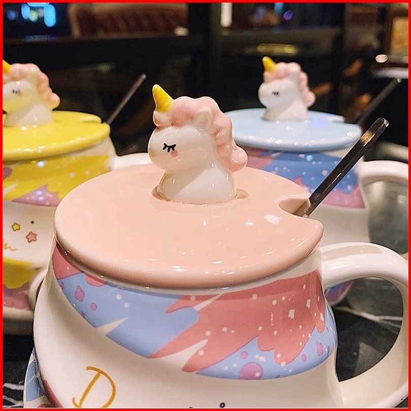 Sendok Gratis Cup Keramik Unicorn Unik Mug Aesthetic Untuk Perempuan Mug Karakter Unicorn Lucu Kado Cangkir Hadiah Ultah