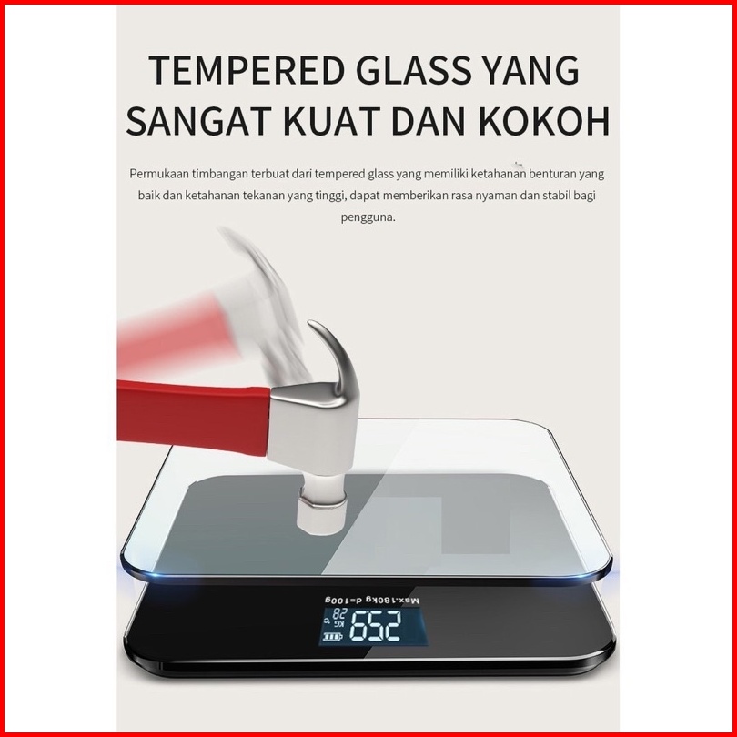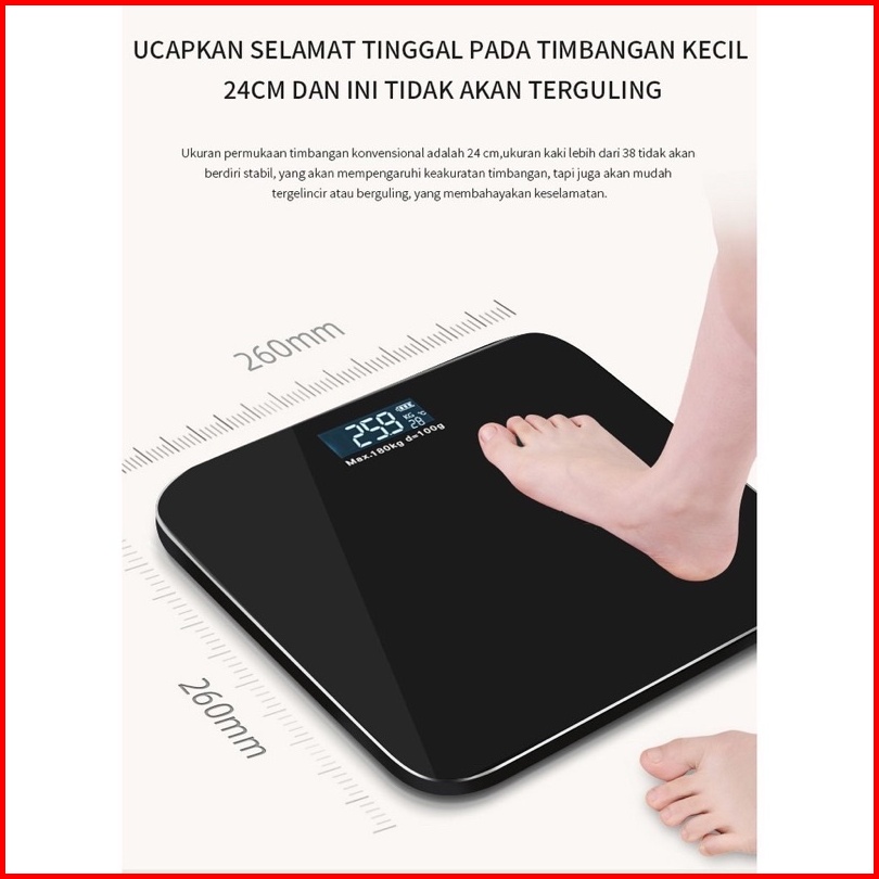Timbangan Badan Digital Dengan Charger Usb Baterai 180kg. Elektrik Lcd Anti Pecah Dewasa Body Besar