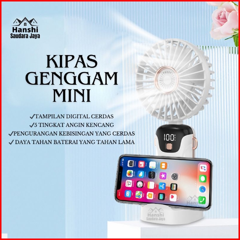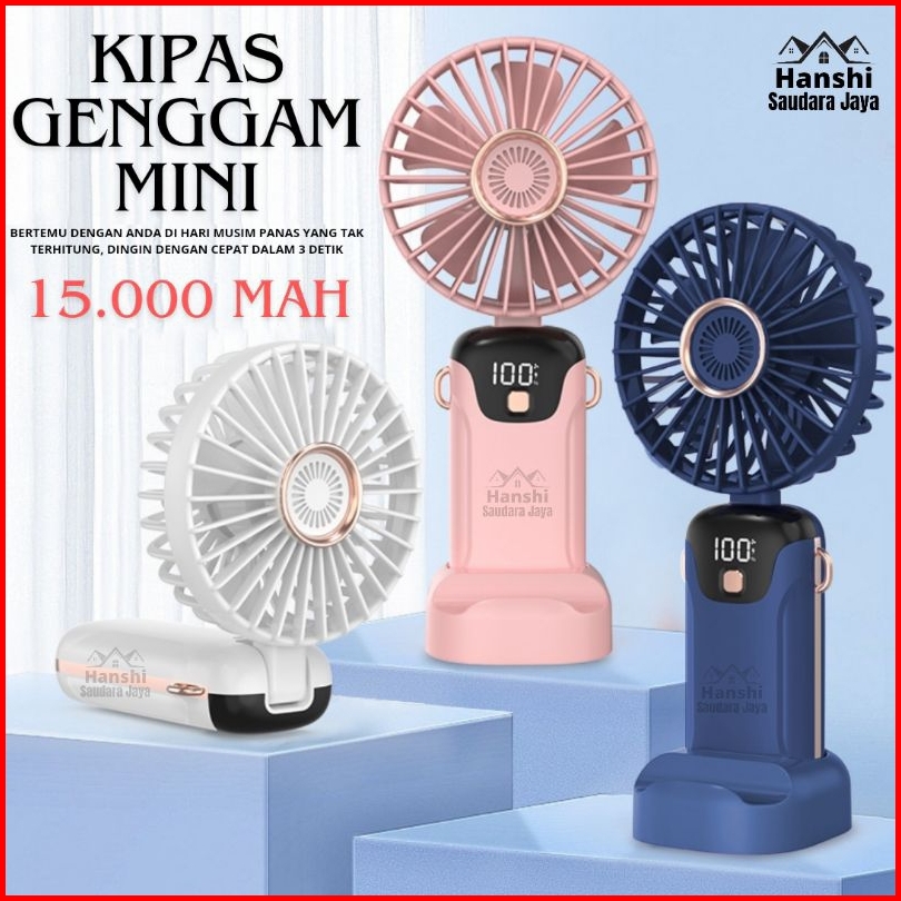 Kipas Angin Mini Portable Usb 15000mah Kipas Lipat Genggam Mini Leher 5-speed Wind Led Display