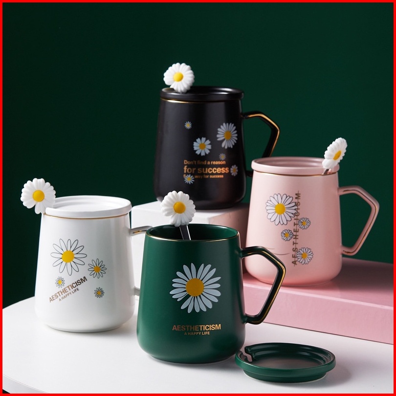 Cangkir Mug Daisy Bunga Cangkir Keramik Cangkir Tutup Sendok Cangkir Tumbler Termos Cangkir Stainless Cangkir Air Kantor