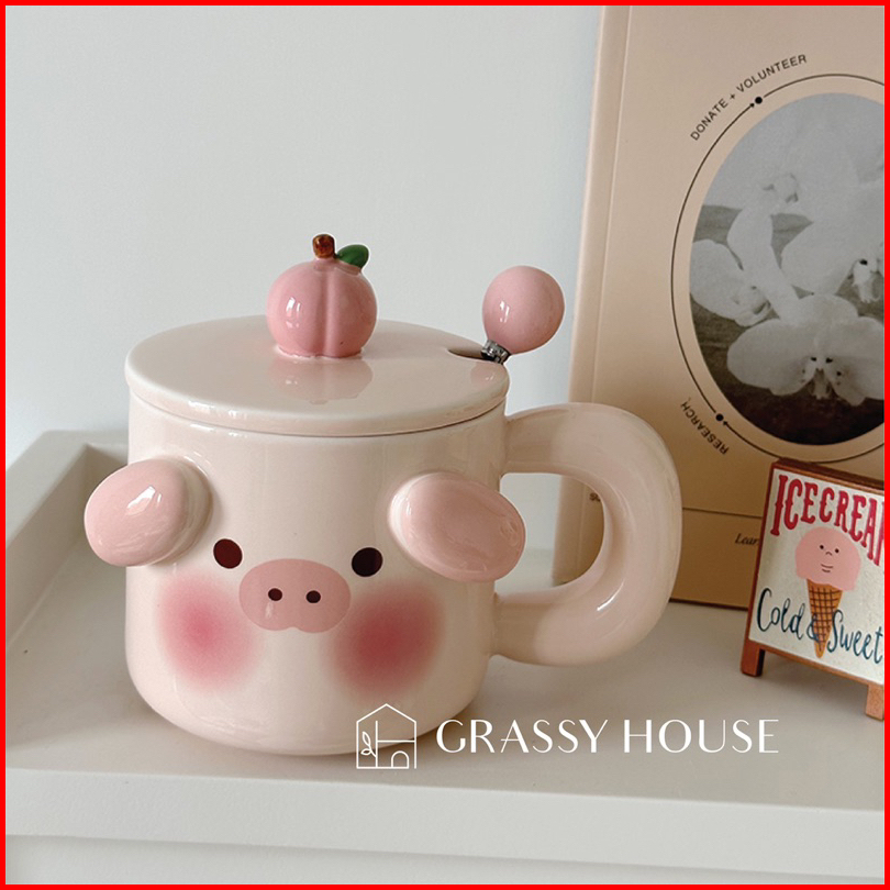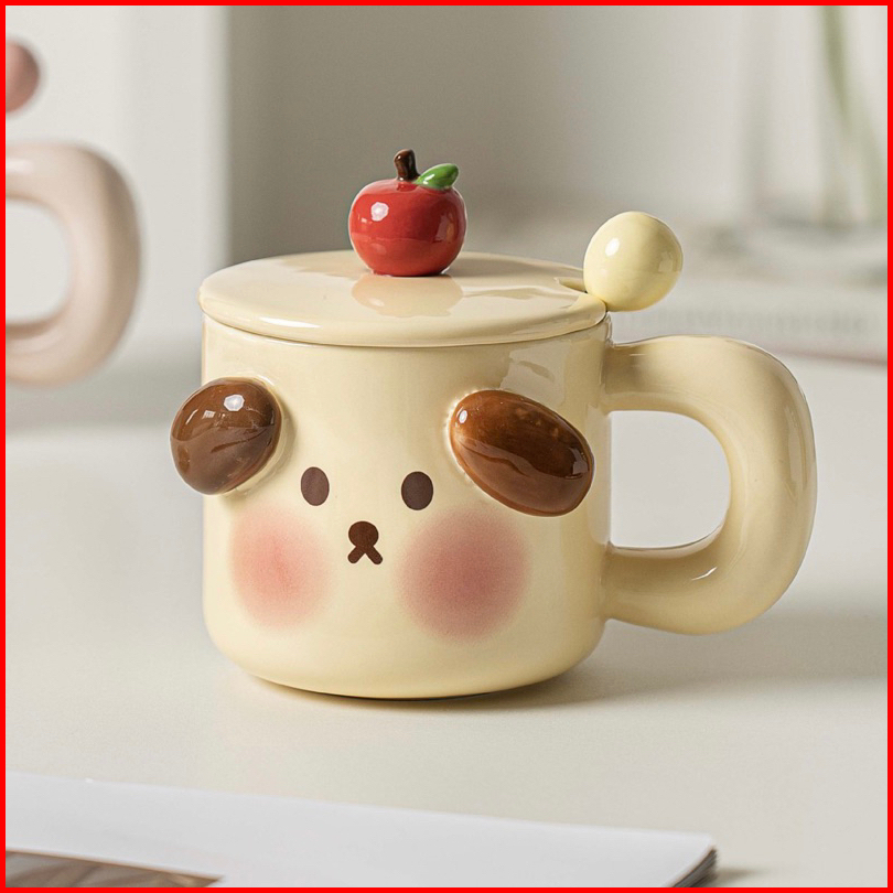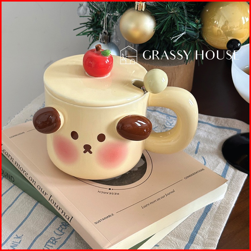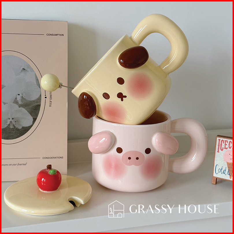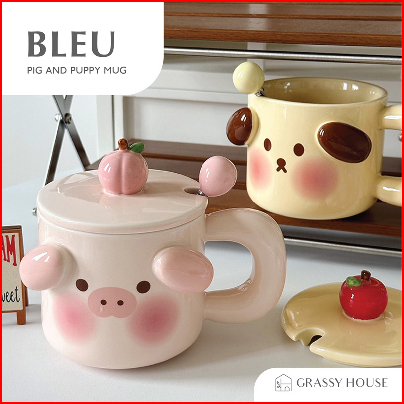 Grassy Bleu Mug Cangkir Puppy Dengan Tutup Ceramic Mug Korean Aesthetic