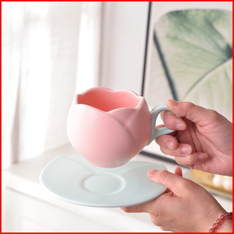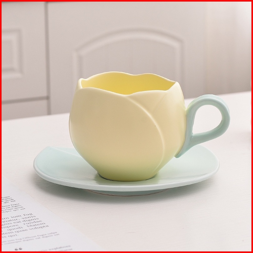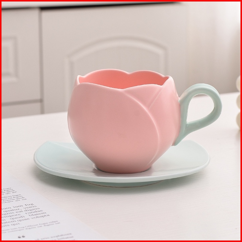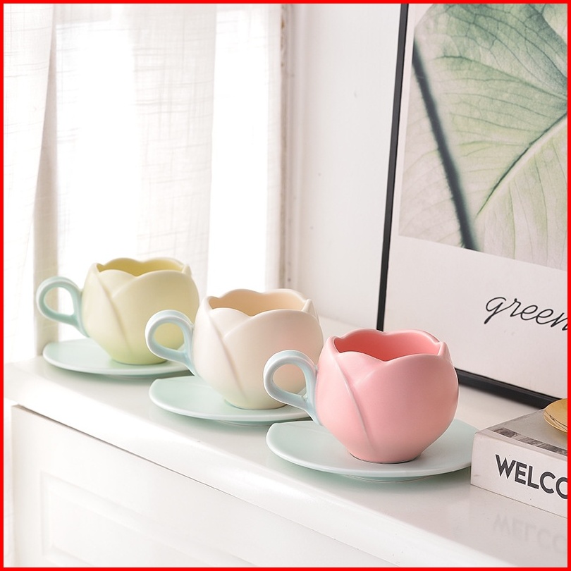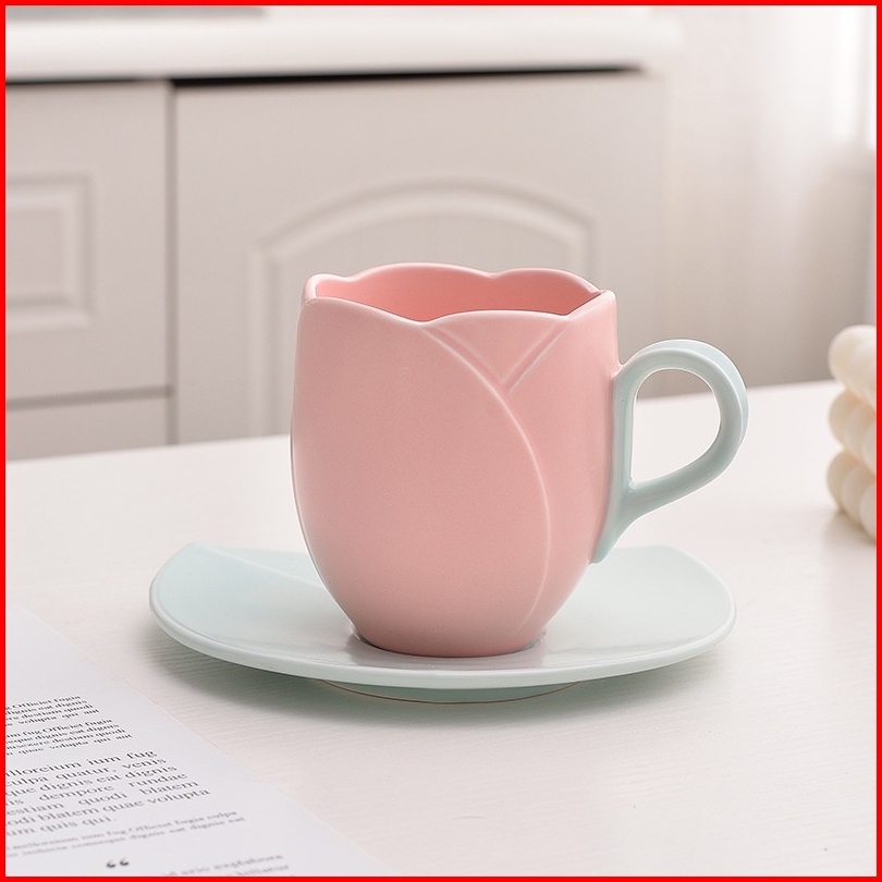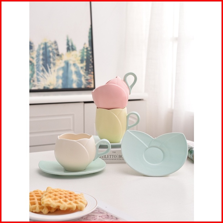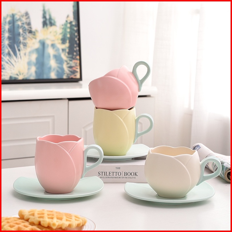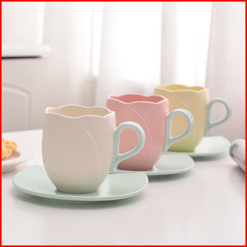 Mi.more Coffee Cup Bunga Tulip Retro Tulip Gelas Cup Flower Mug Afternoon Tea Ceramic Cup And Saucer Set