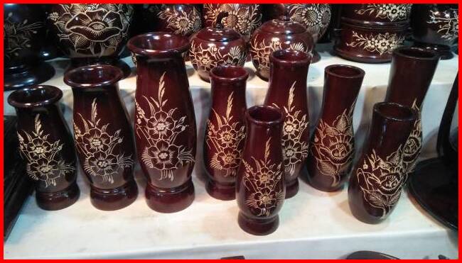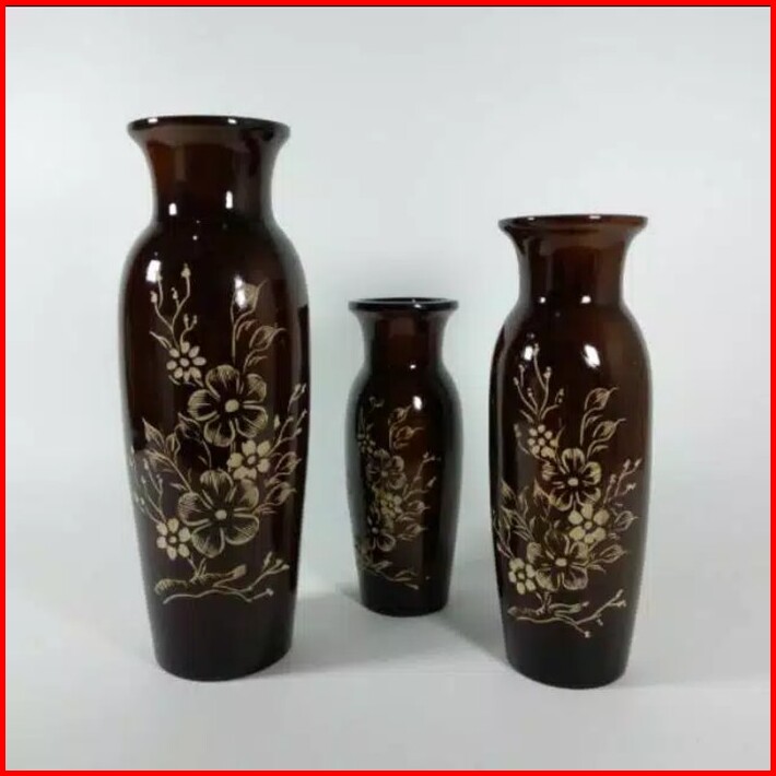 Vas Bunga Kayu Jati Ukir 1 Set Isi 3 Pcs - Guci Dekorasi Murah