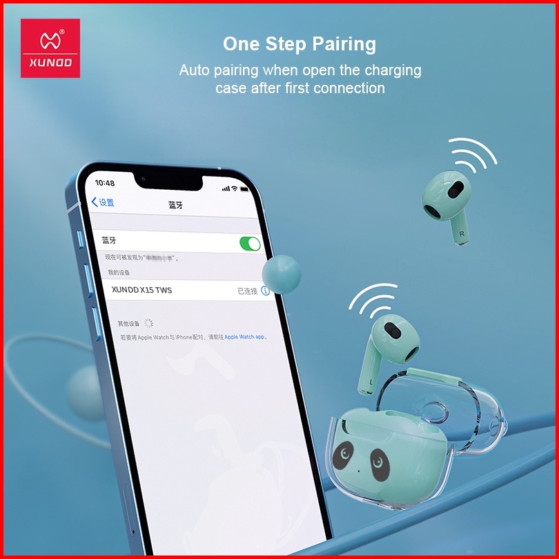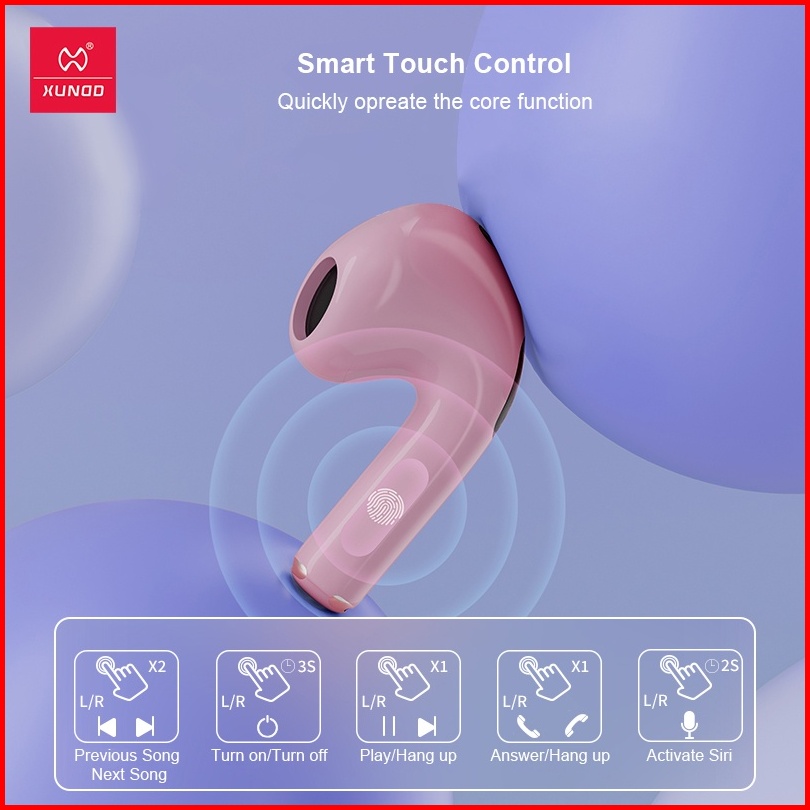 Xundd X15 Wireless Bluetooth Earphone Mini True Headset Tws Stereo Touch Sensor Macaron Transparan Music
