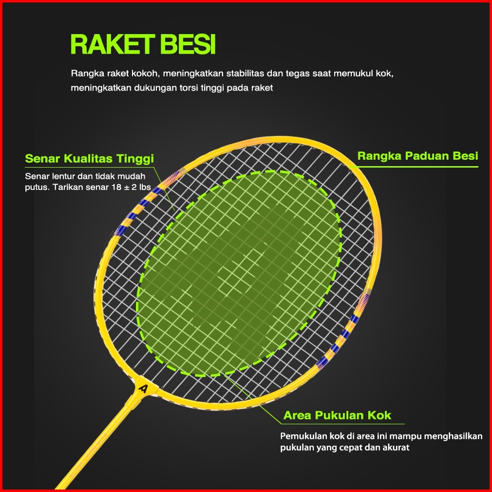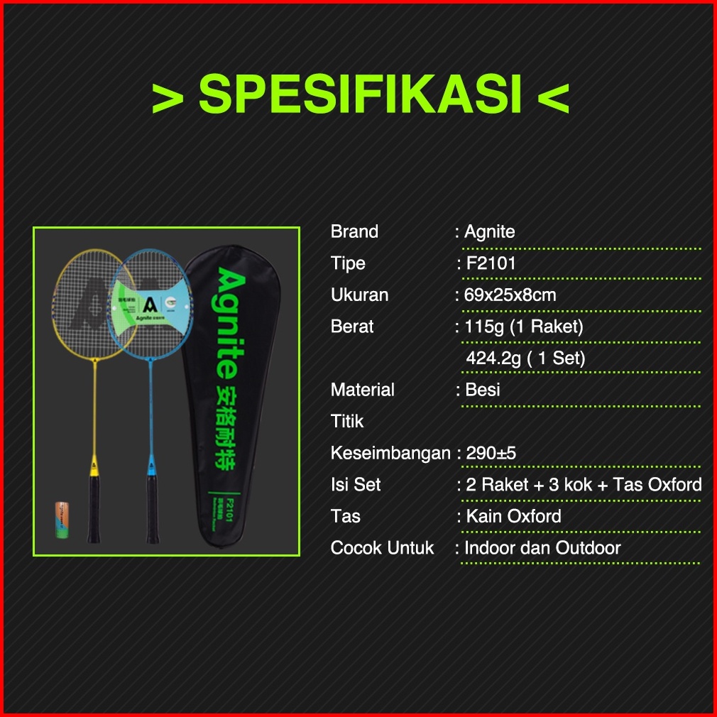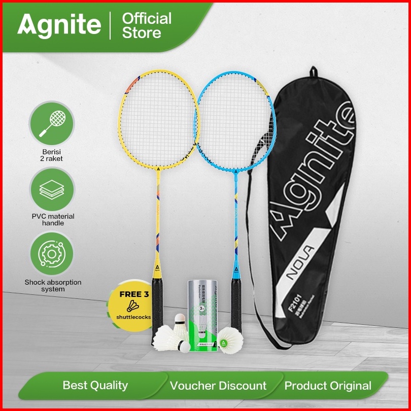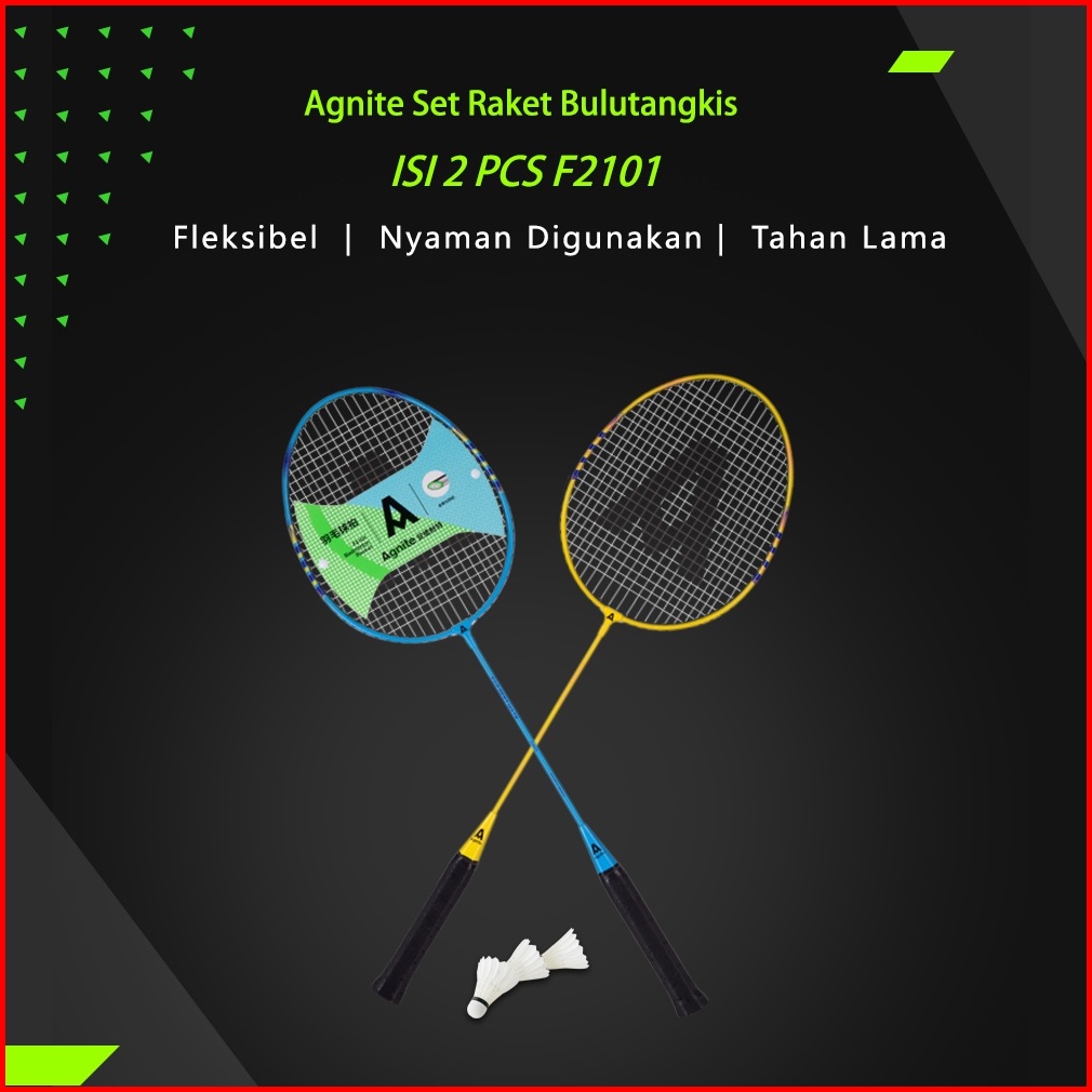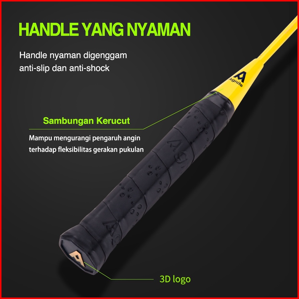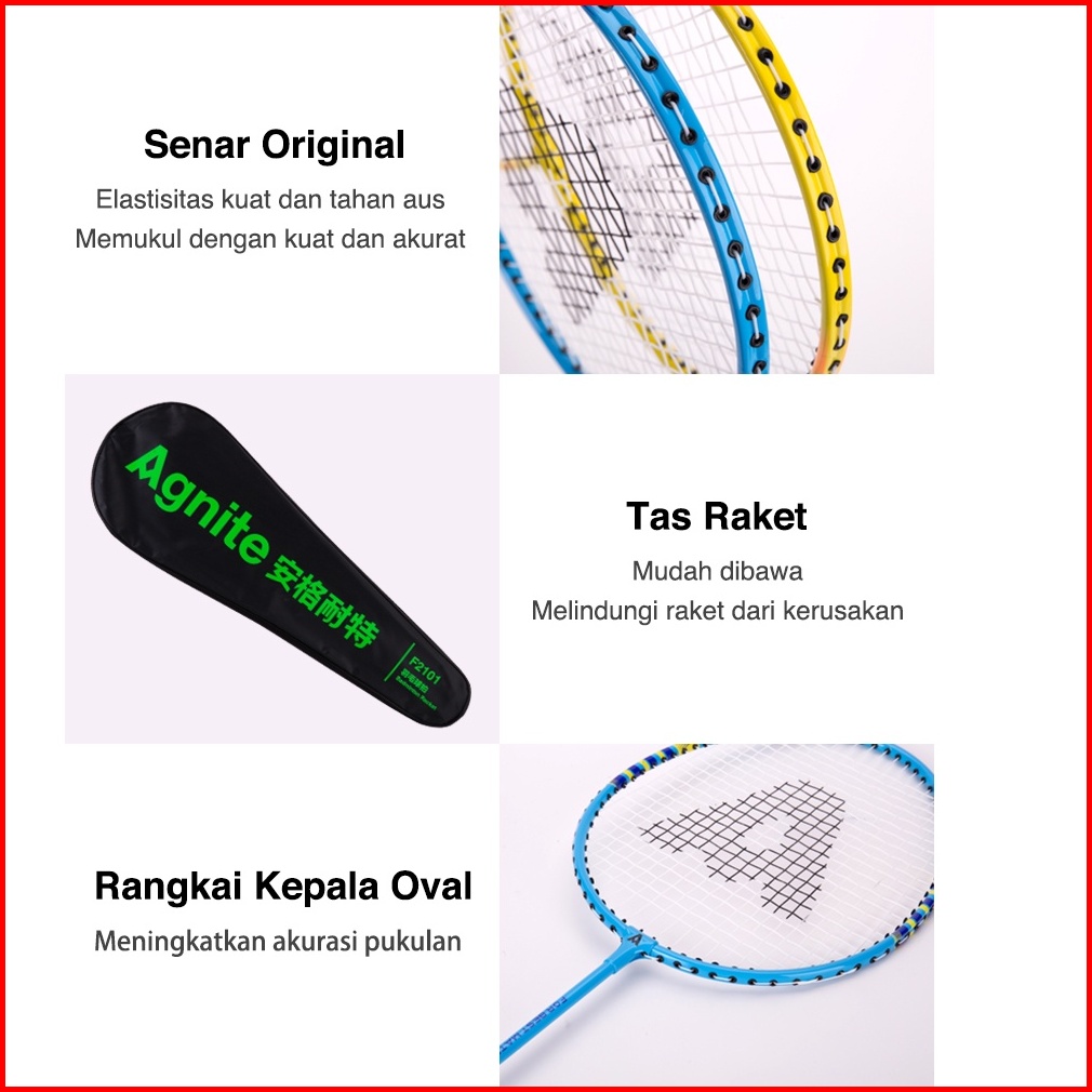 Agnite Badminton Racket Raket Badminton Bulu Tangkis Isi 2 Karbon Senar Nylon Gratis Kok F2101