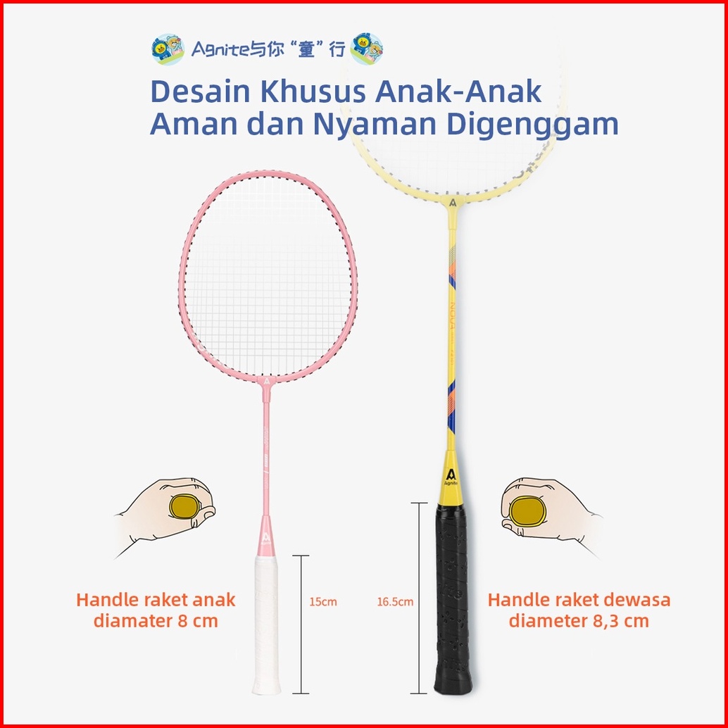 Agnite Children Badminton Racket Raket Badminton Raket Bulu Tangkis Anak High Quality F2128