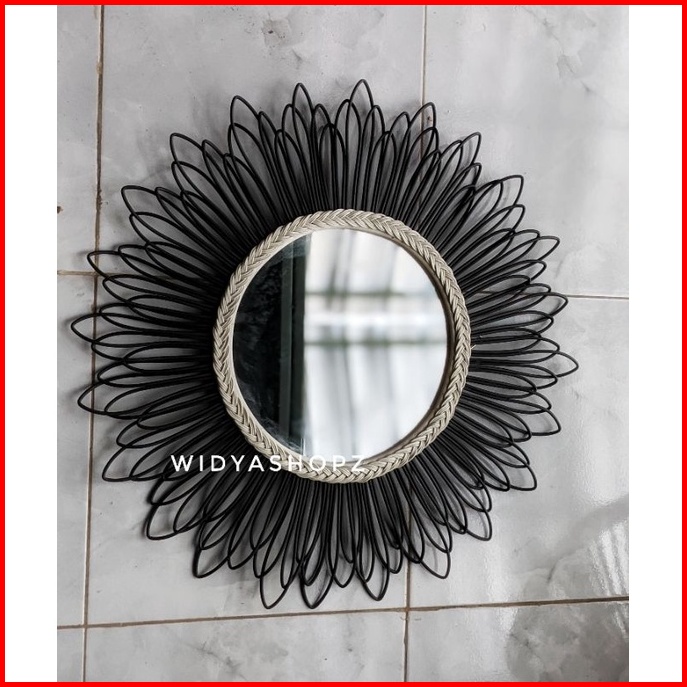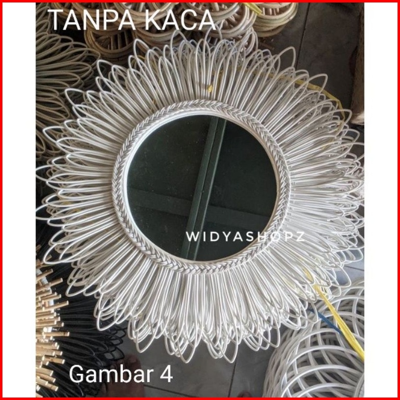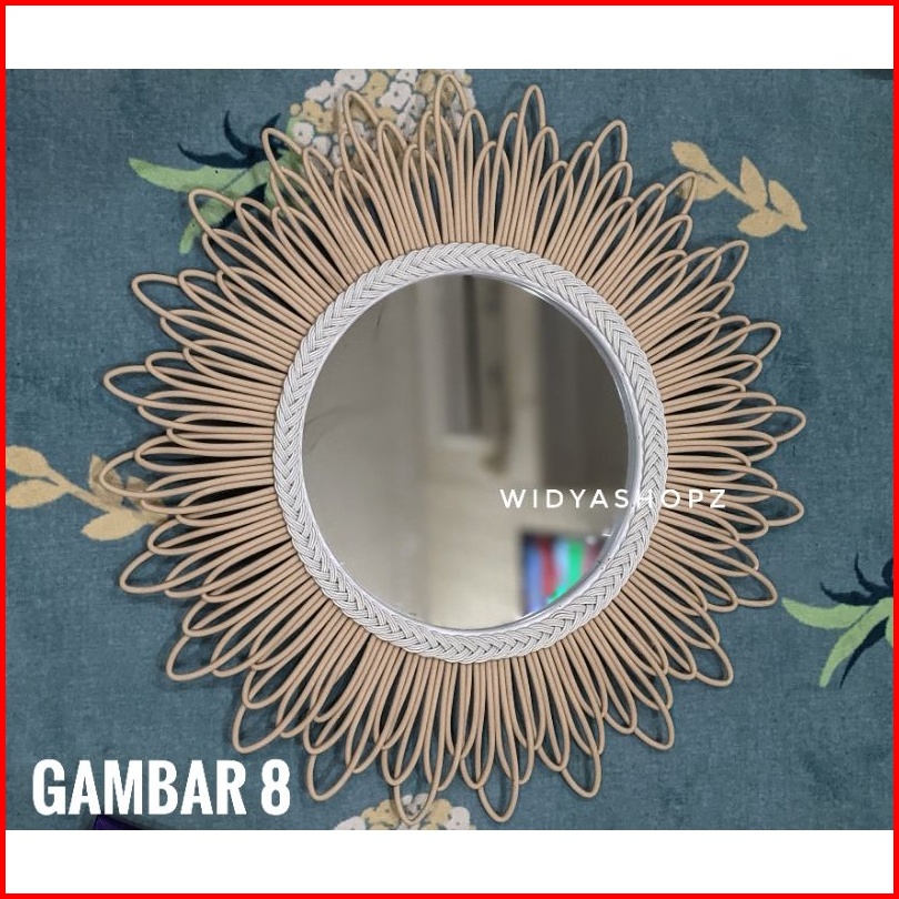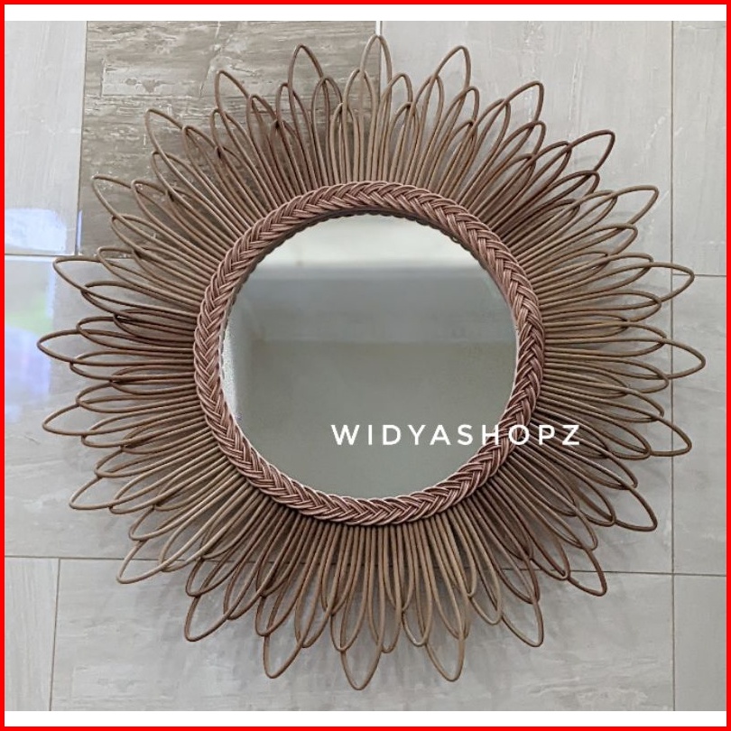 Cermin Kaca Rotan Sintetis Hiasan Dinding Dekorasi Estetik Kerajinan Tangan Furniture Unik