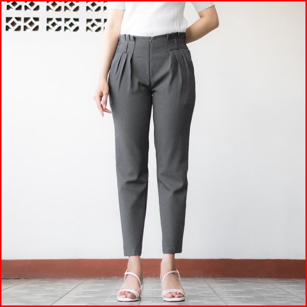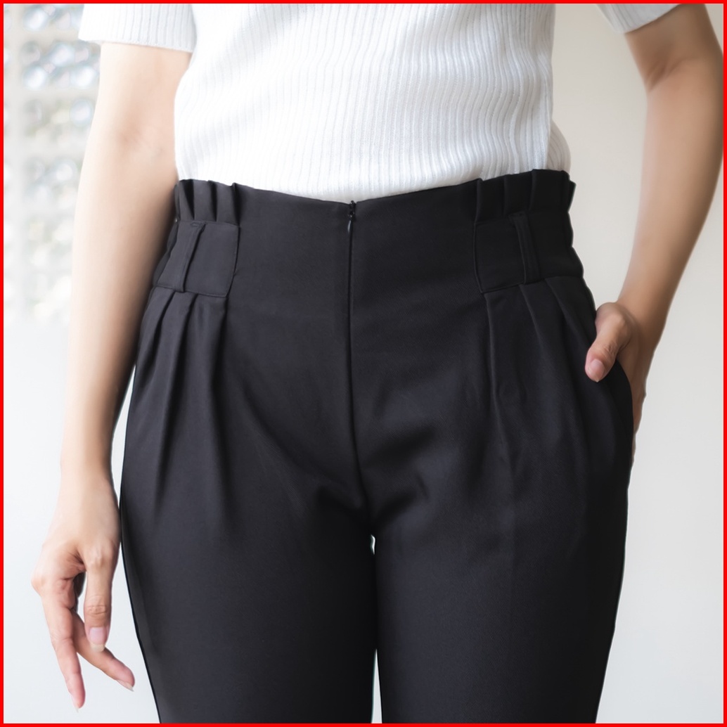 Haymeeidn - Celana Kantor Highwaist Pinggang Rempel Sleting Depan