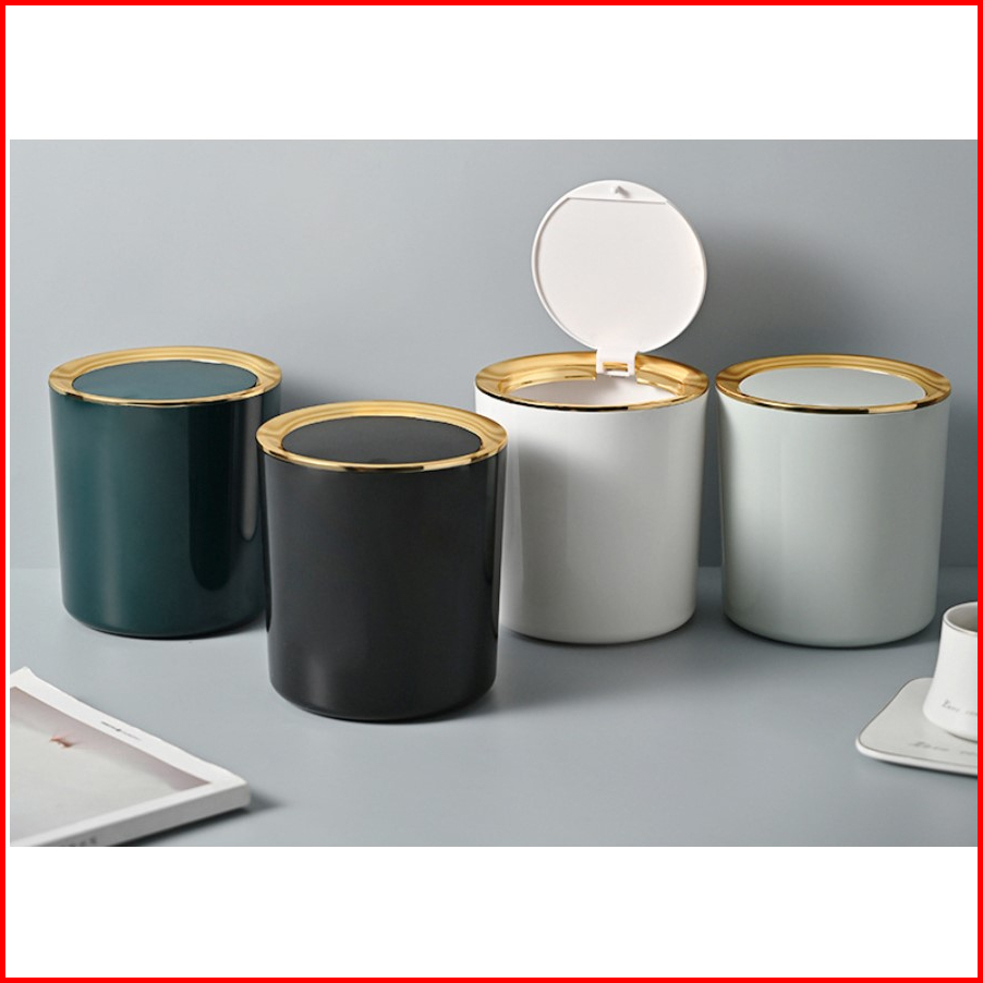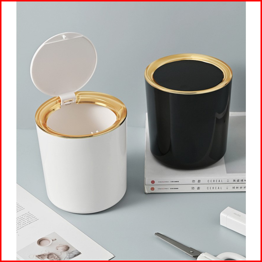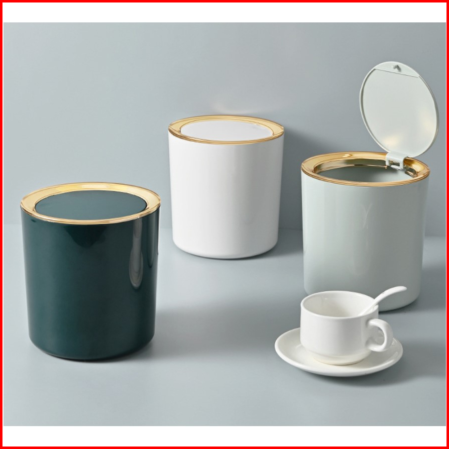Tempat Sampah Meja Bulat Plastik Dengan Tutup Mini Trash Bin Wh-7002