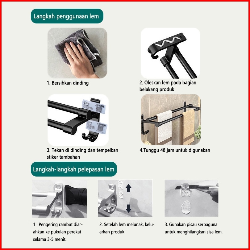 Rak Penyimpanan Kamar Mandi Rak Handuk Tahan Air Dan Anti Karat Tanpa Pengeboran Dipasang Di Dinding