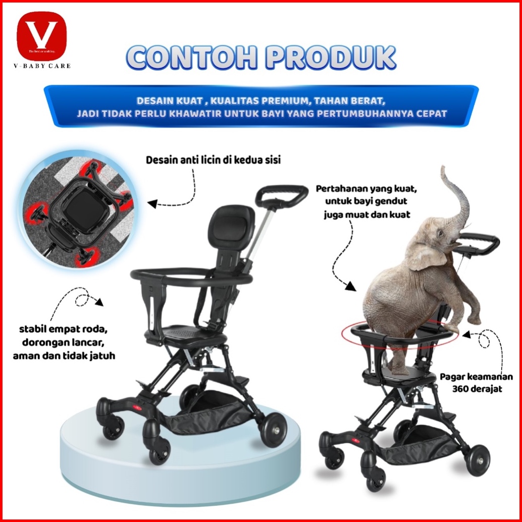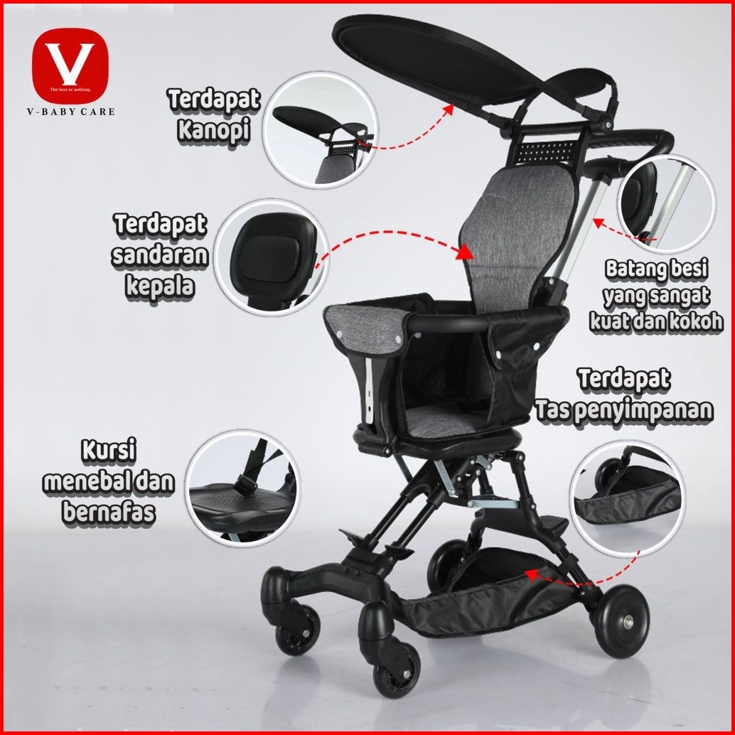 V-baby Care Stroller Bayi Lipat Stroller Bayi Dua Arah Kereta Dorong Bayi Lipat Kereta Dorong Bayi Dua Ara Kereta Dorong