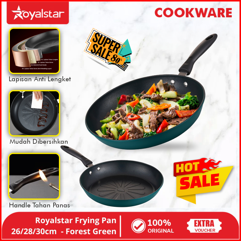 Royalstar Green Pan Wokpan 26 Cm Lid - Panci Wajan Penggorengan - Teflon 26 Cm - Wajan Nonstick