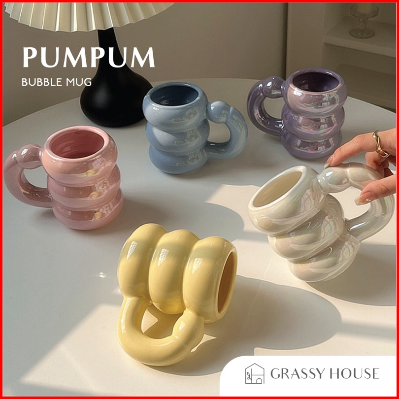 Grassy Pumpum Gelas Kopi Ceramic Aesthetic 420ml Bubble Mug Mug Keramik Tebal Korean Aesthetic