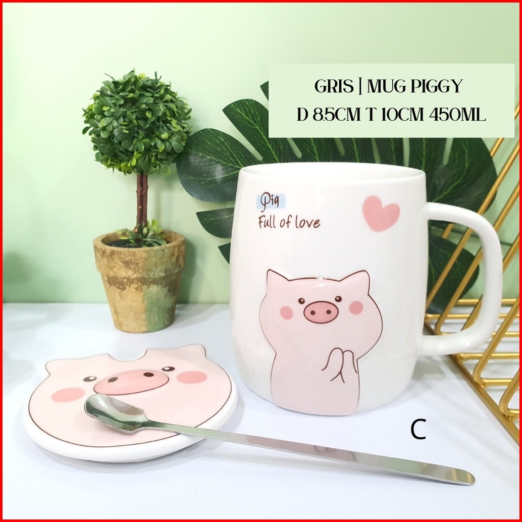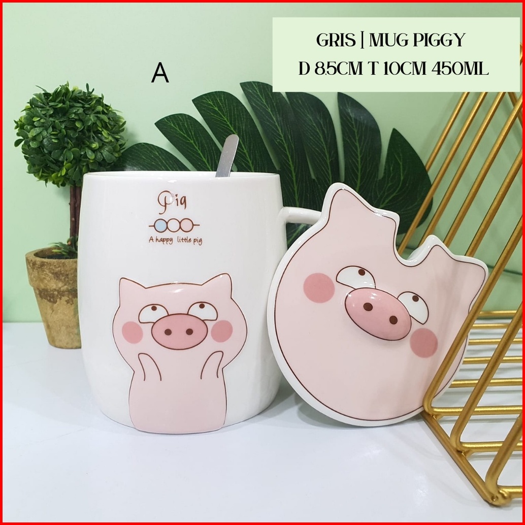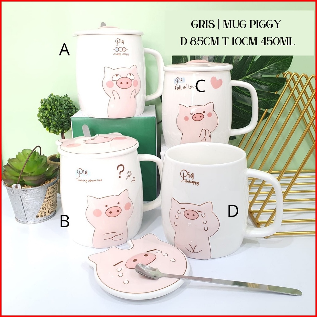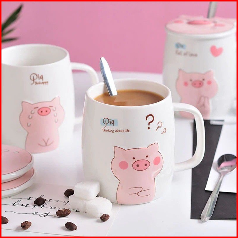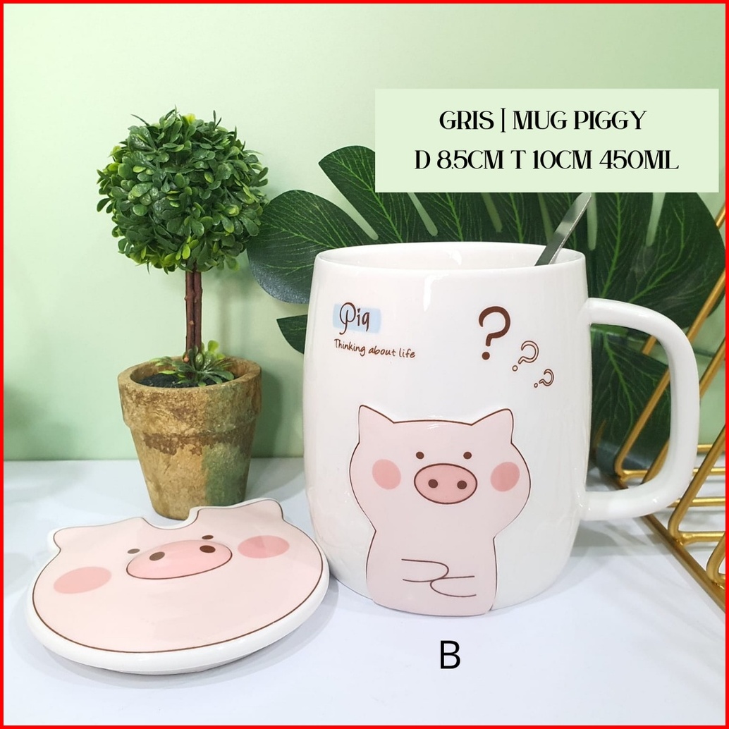 Mug Keramik Cute Pig Gelas Piggy Gelas Kopi Pig Sendok Tanpa Hiasan