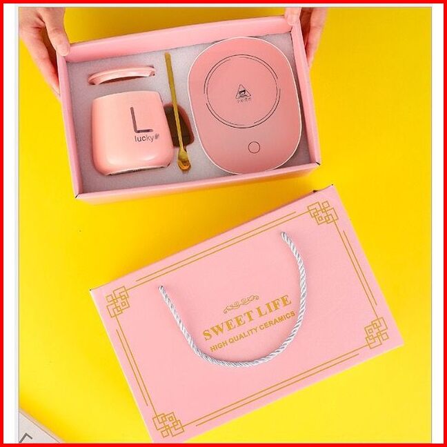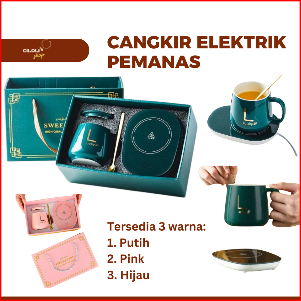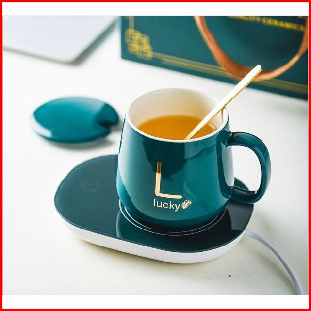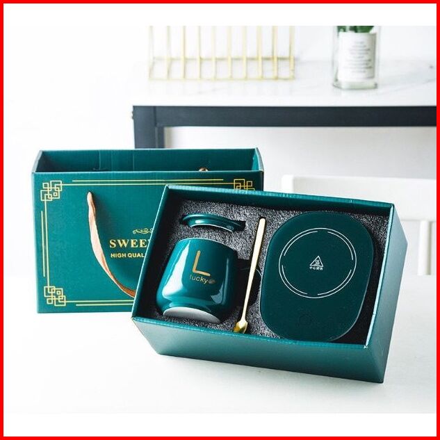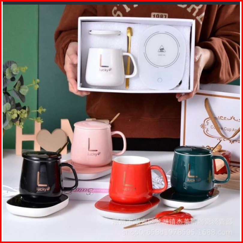 Mug Cangkir Elektrik Set Keramik Pemanas 55 Derajat Penghangat Kopi Gelas Mewah Keramik Listrik Dan Sendok Vs-1847