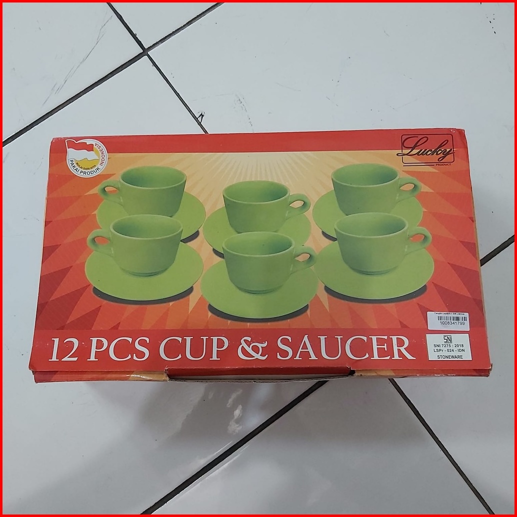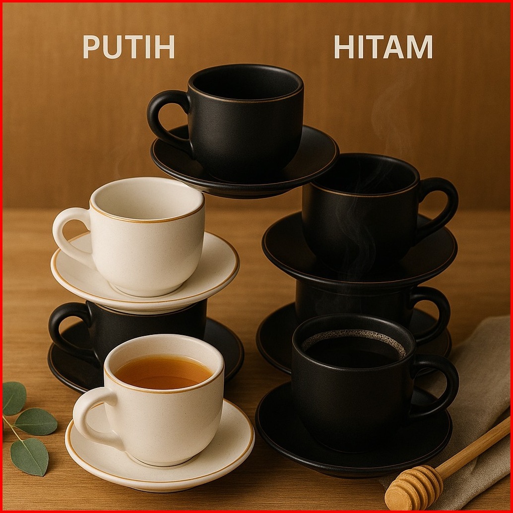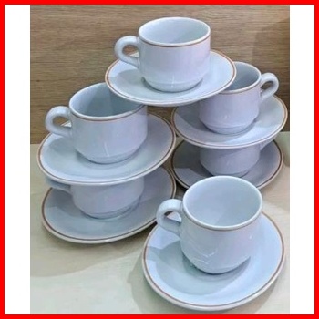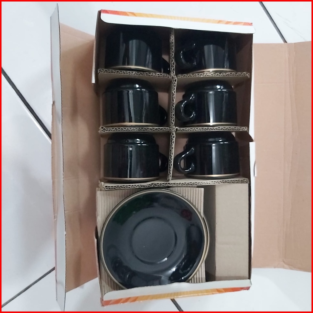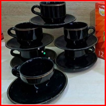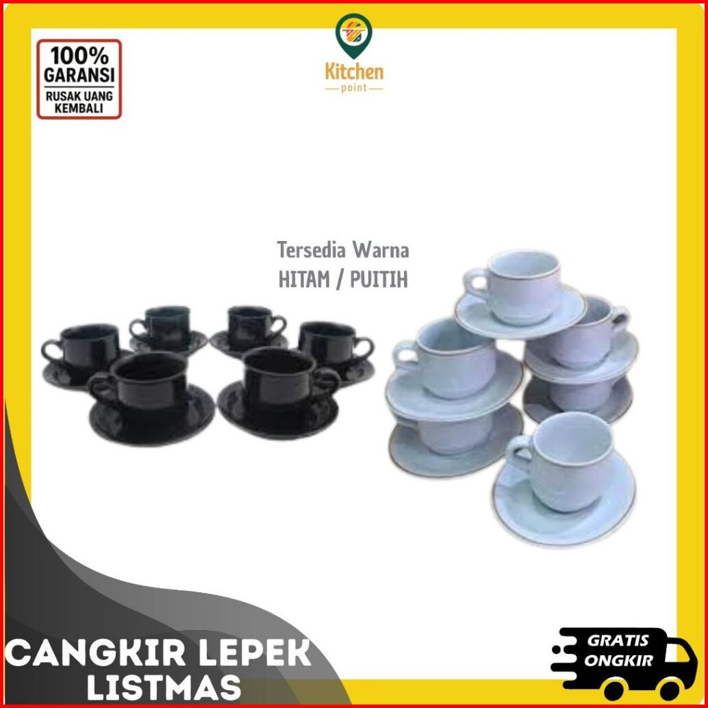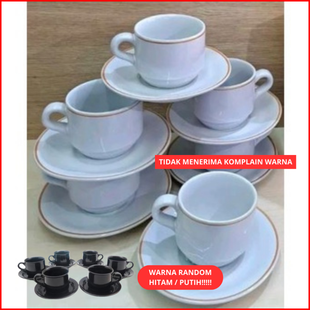 Cangkir Lepek Keramik 8.1 Sw Motif Listmas 12 Pcs Hitam Putih Random - Kp