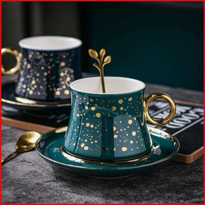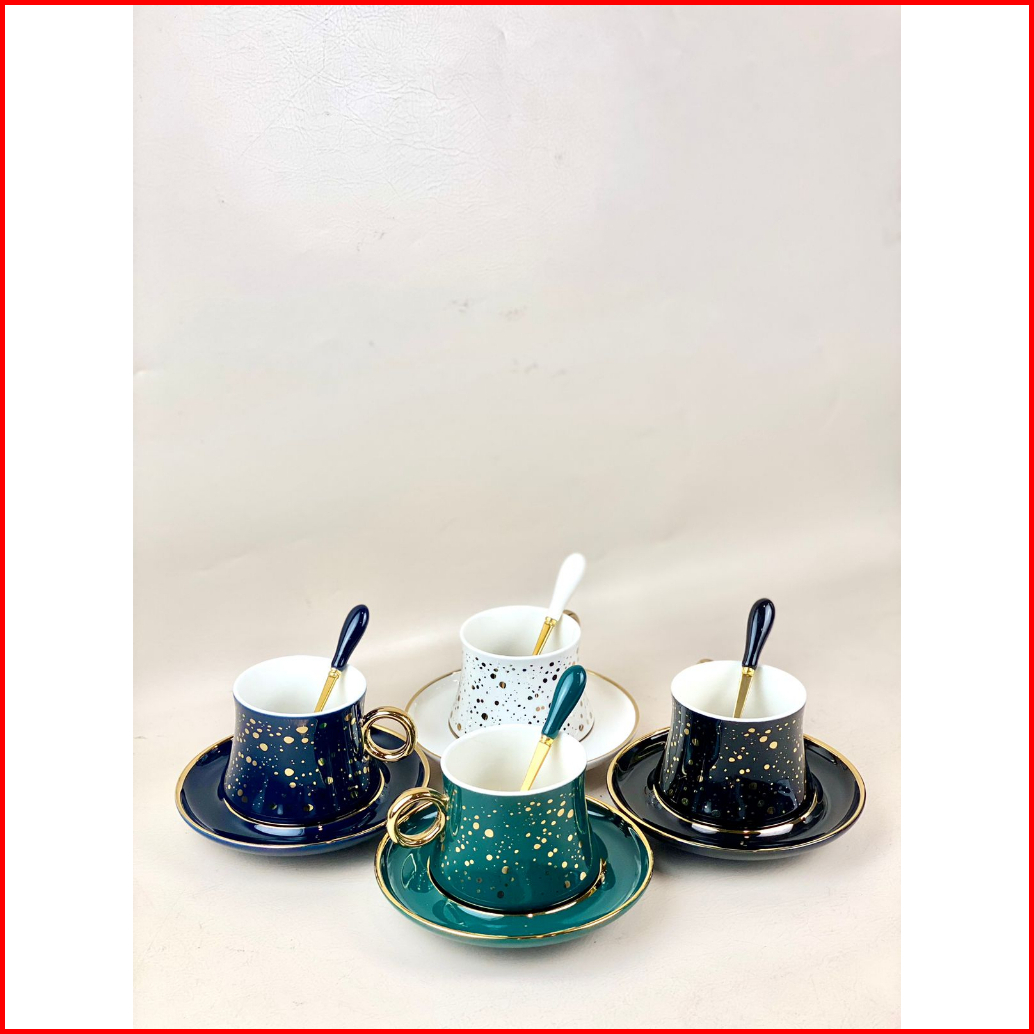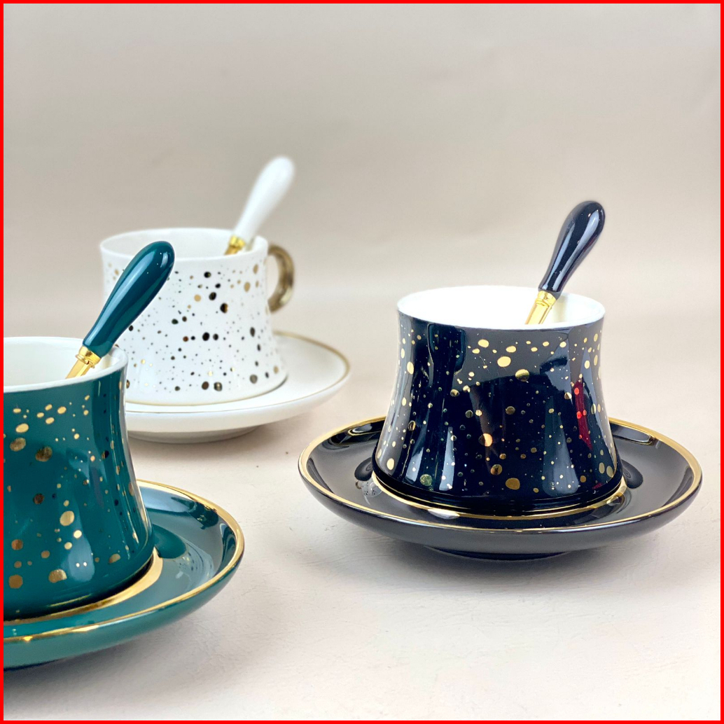 Ashome Cangkir Keramik Set Motif Polkadot List Elegan Dengan Sendok Dan Piring Ceramic Tea Cup Elegant Cangkir Kopi Aest