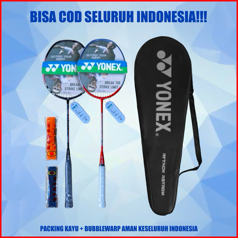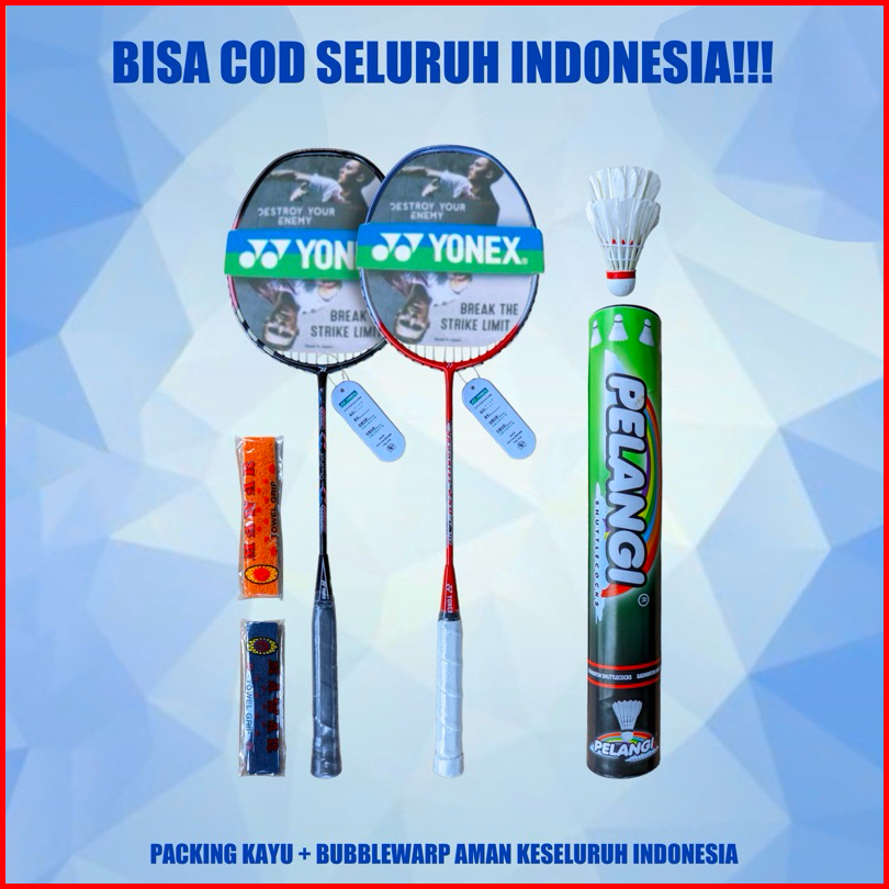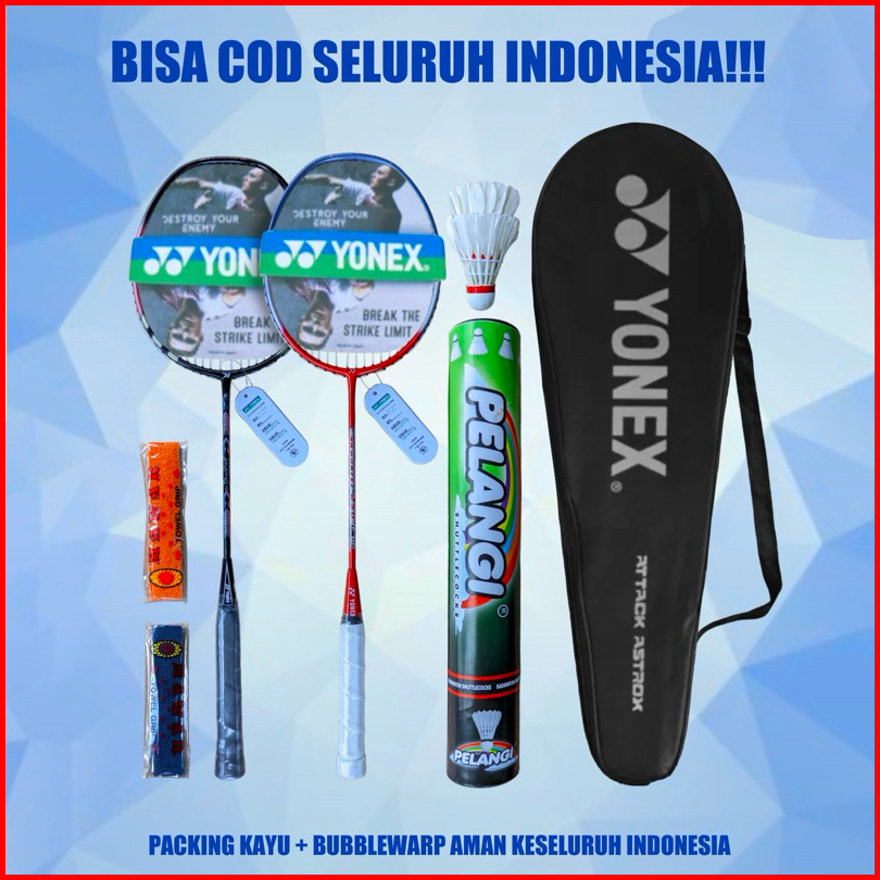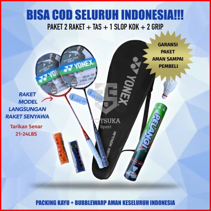 Raket Badminton Bulutangkis Senyawa 2raket 2grip Tas Kok 12 Pcs