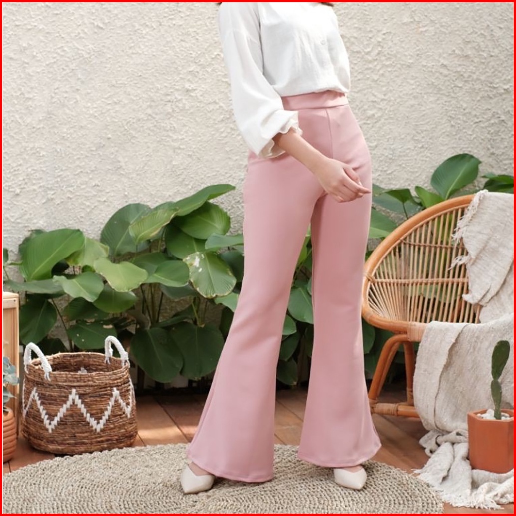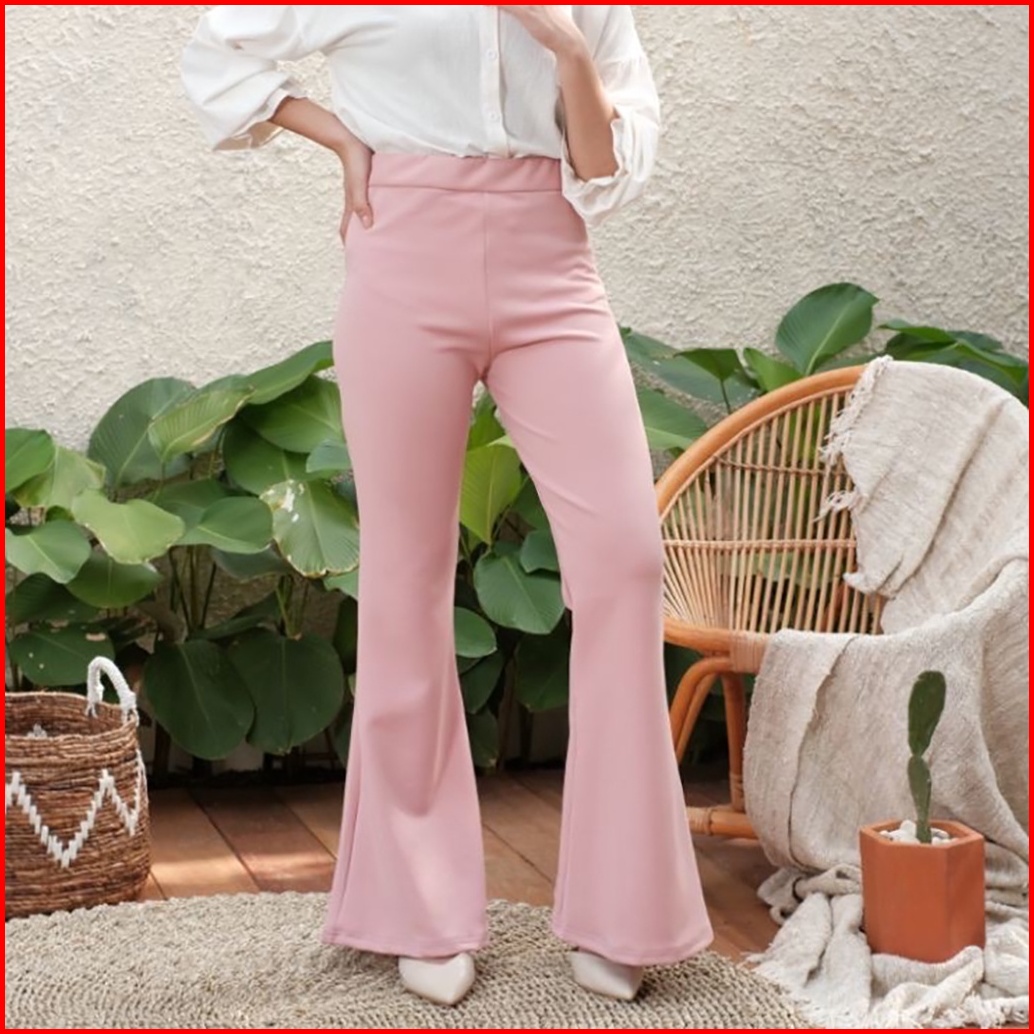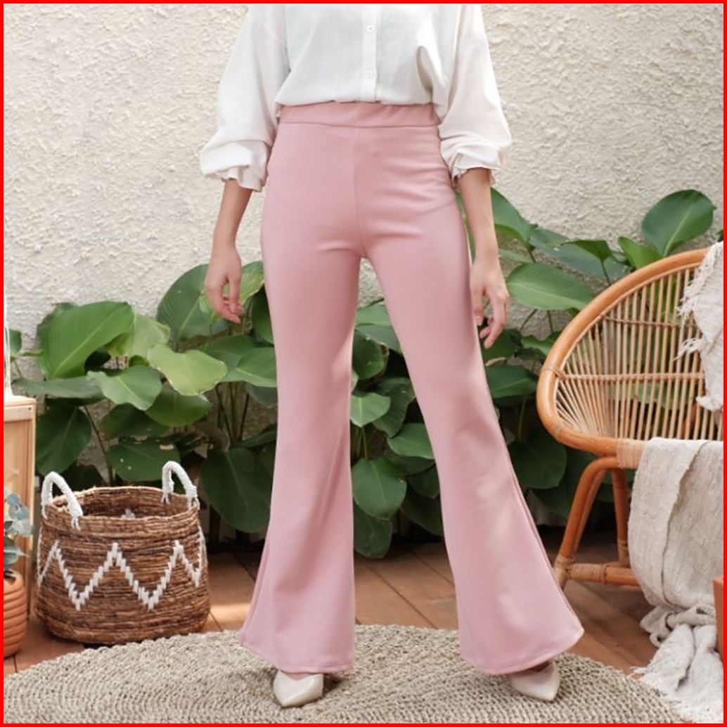 Haymeeidn - Celana Cutbray Scuba 207 Pink Salem Bawahan Highwaist Casual Cutbray Kantor