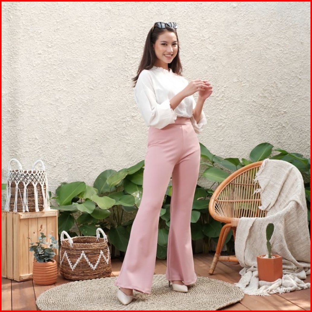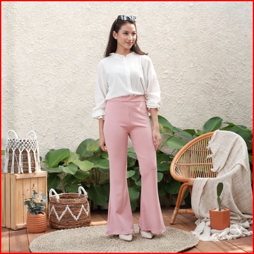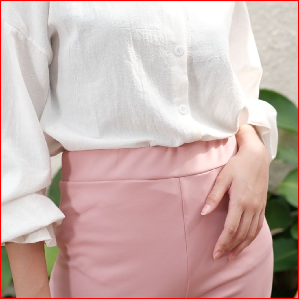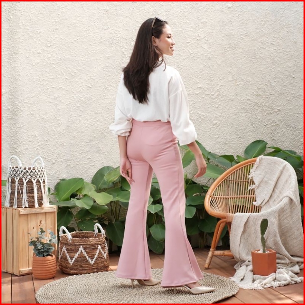 Haymeeidn - Celana Cutbray Scuba 207 Pink Salem Bawahan Highwaist Casual Cutbray Kantor