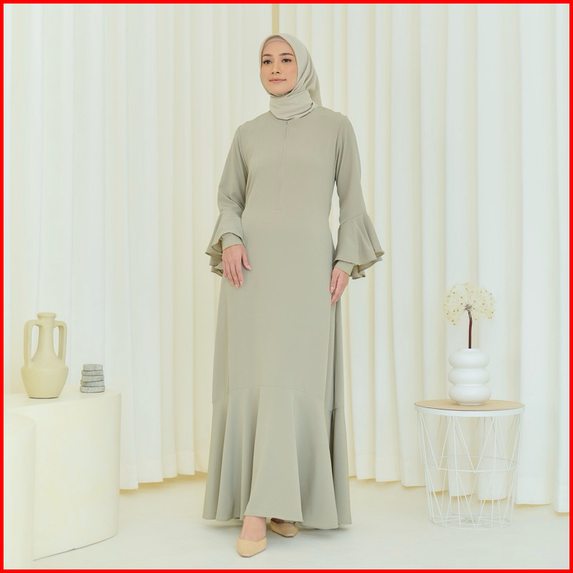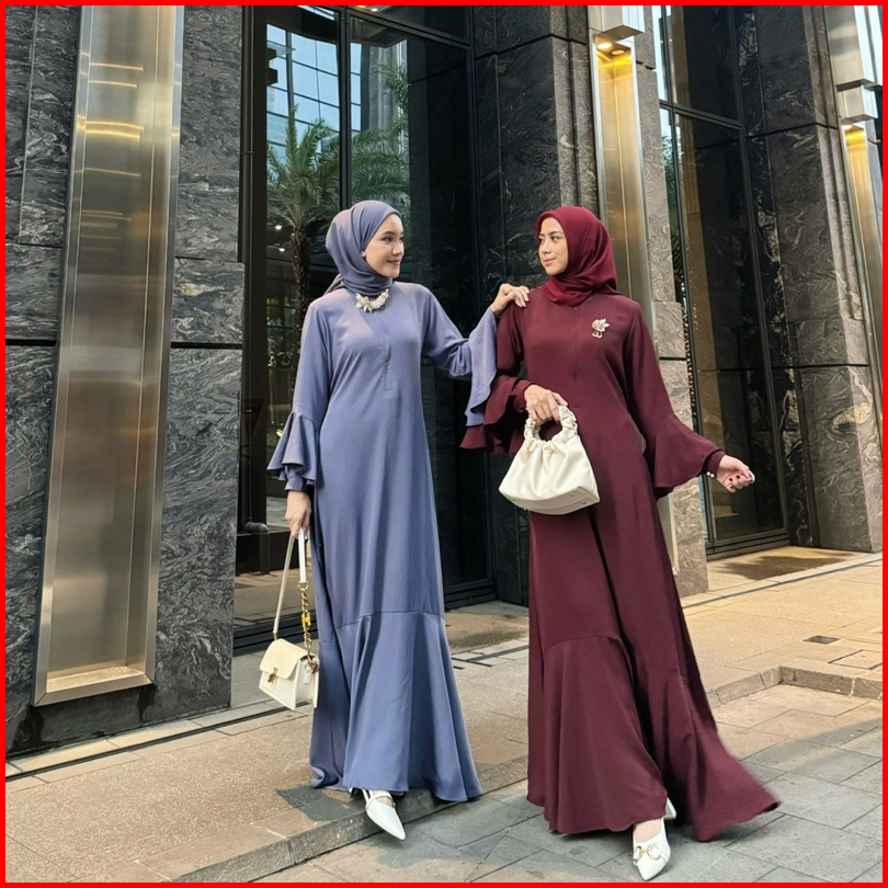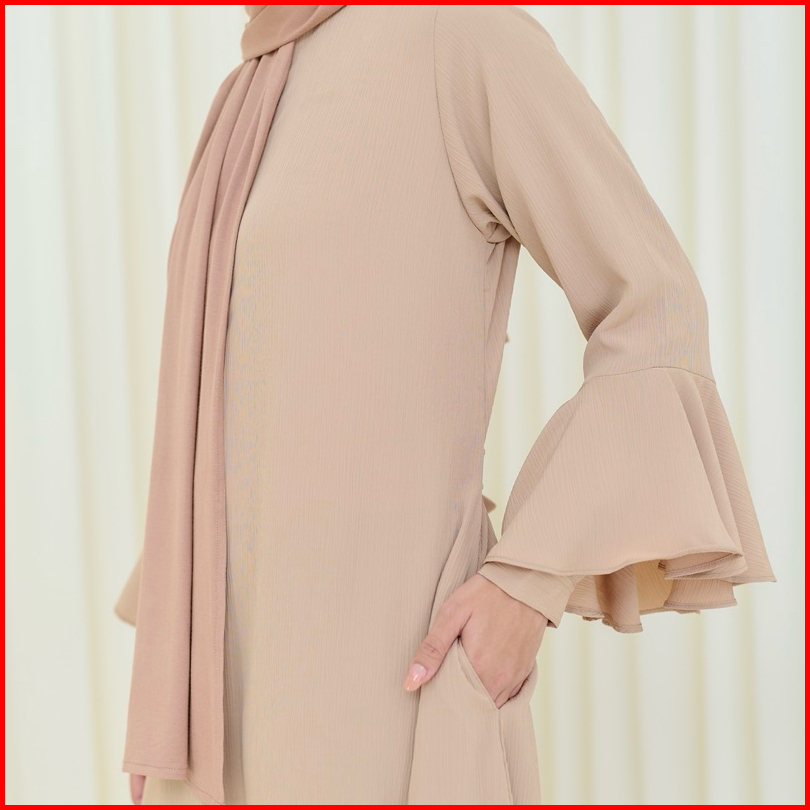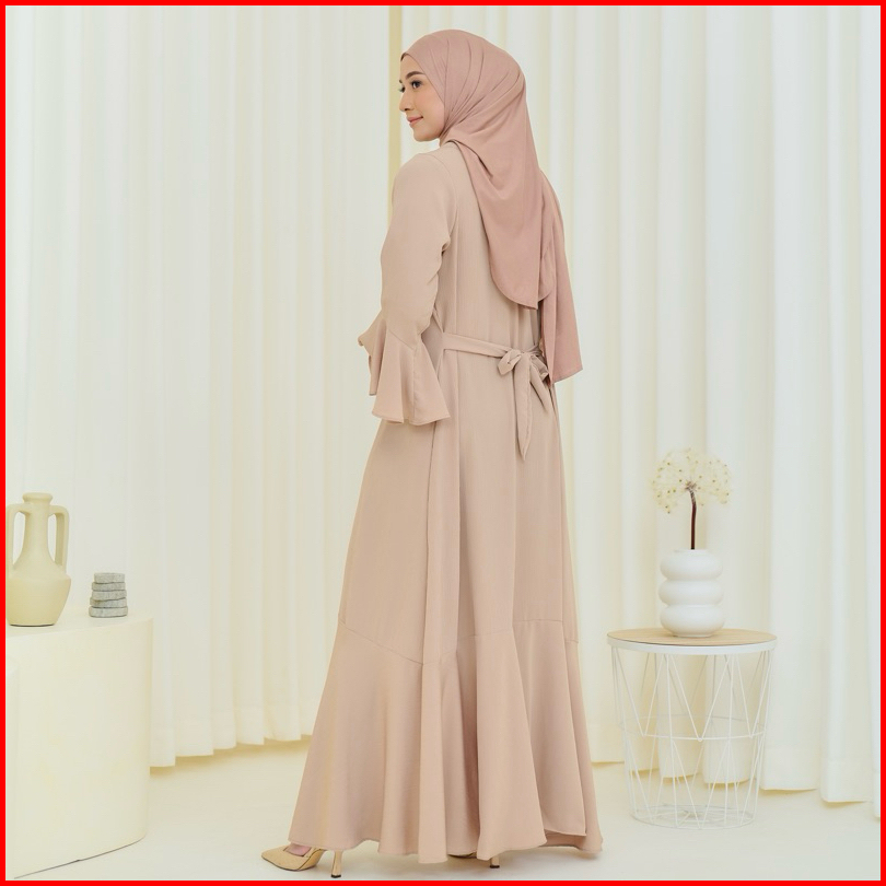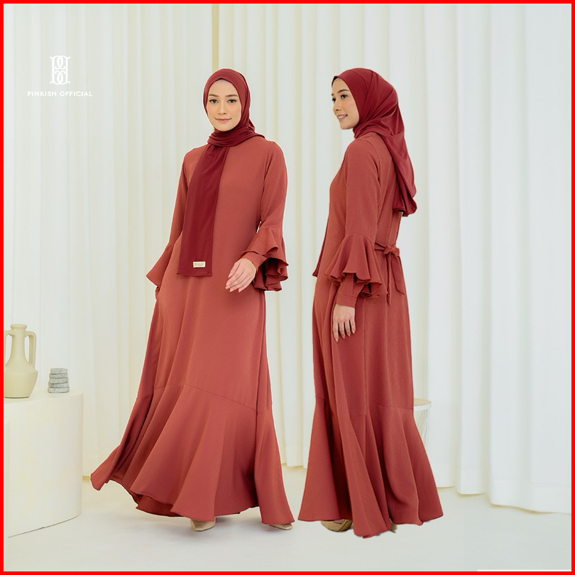 Pinkish - Syifa Dress Dress Gamis Polos Simpel Dengan Detail Ruffle Kantong Tali Pinggang Dan Busui Friendly