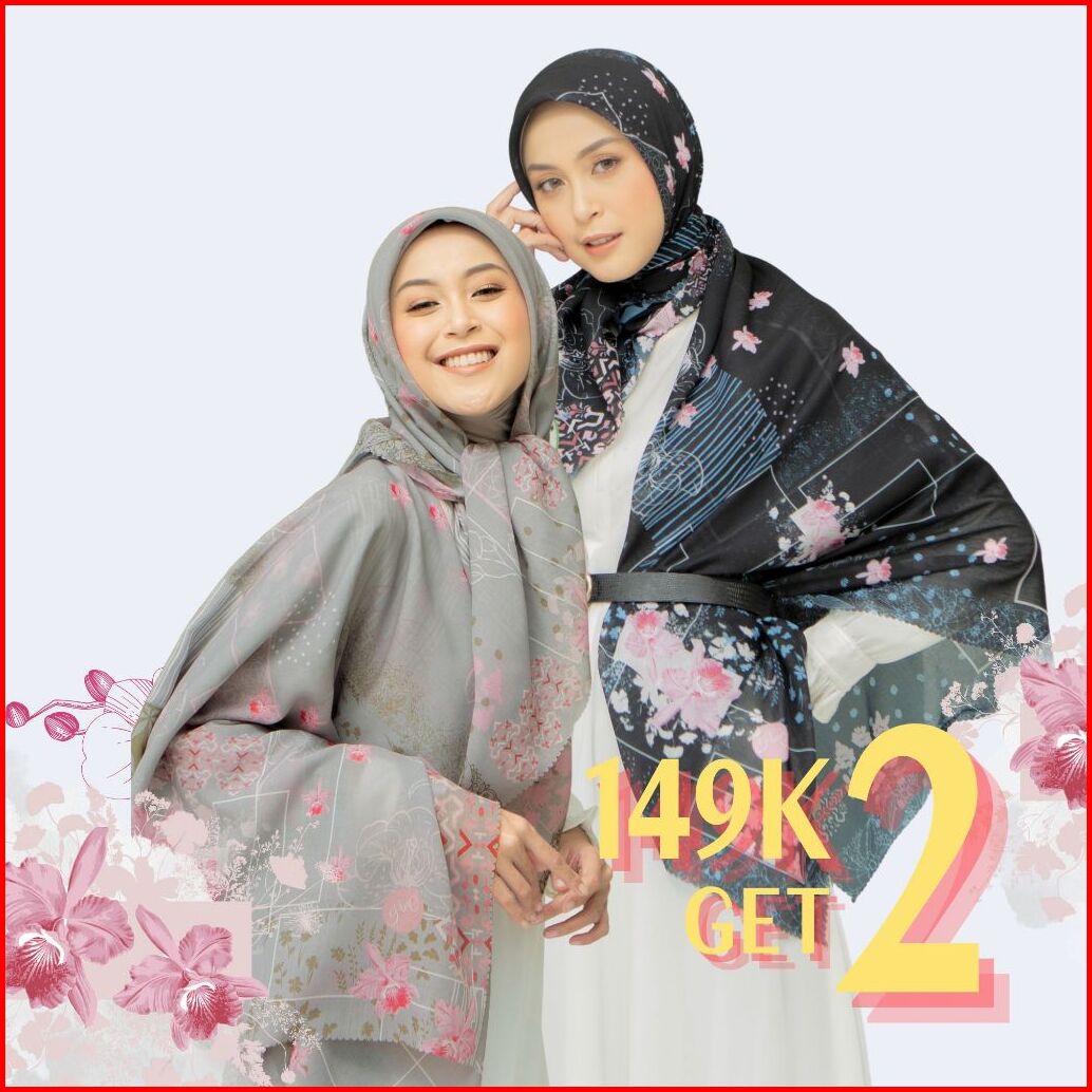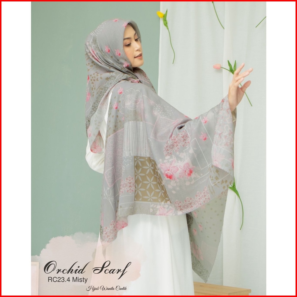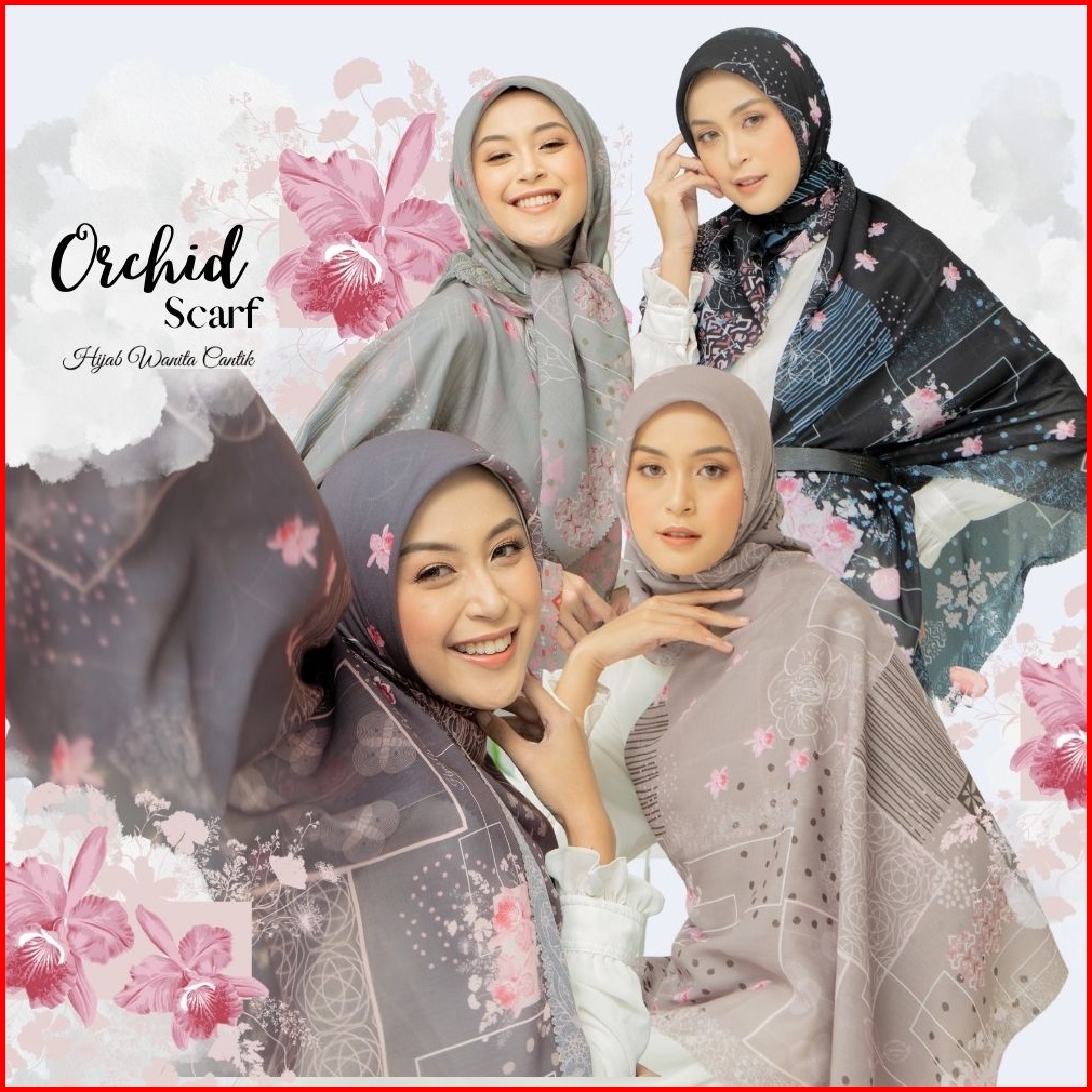 Hira - Hijabwanitacantik - Segiempat Orchid Scarf Bahan Veta Voal Aromatic Hijab Segi Empat Printing Motif Premium