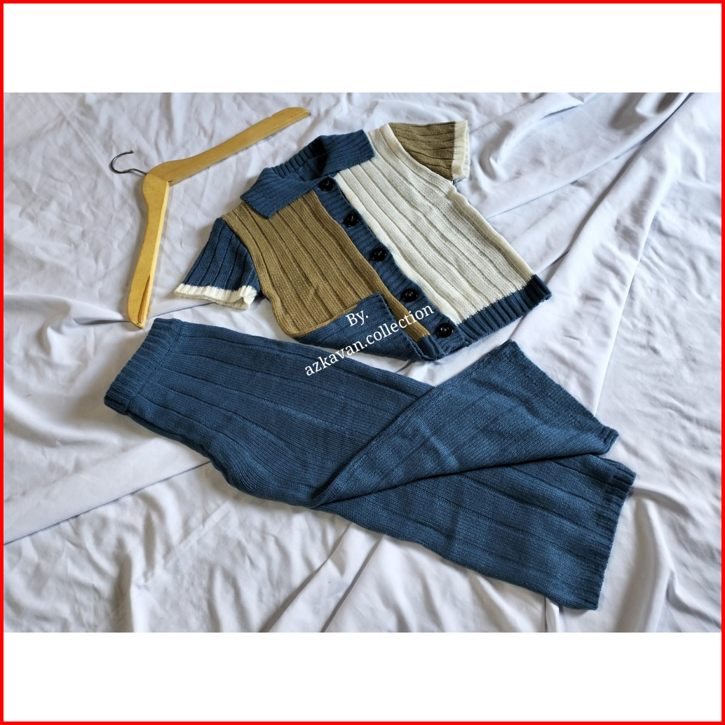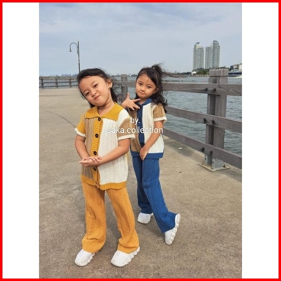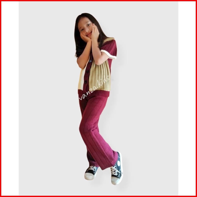 One Set Anak Stelan Anak Perempuan Celana Mix Kemeja Rajut Set Kulot Anak Usia 4-12 Tahun