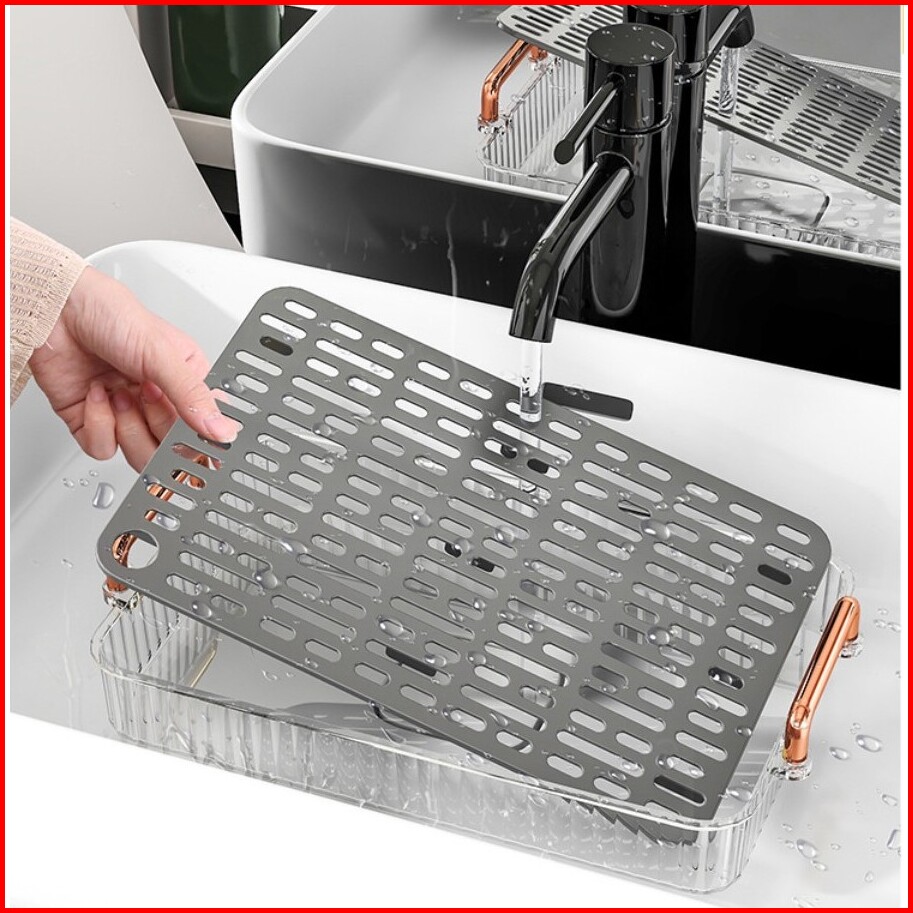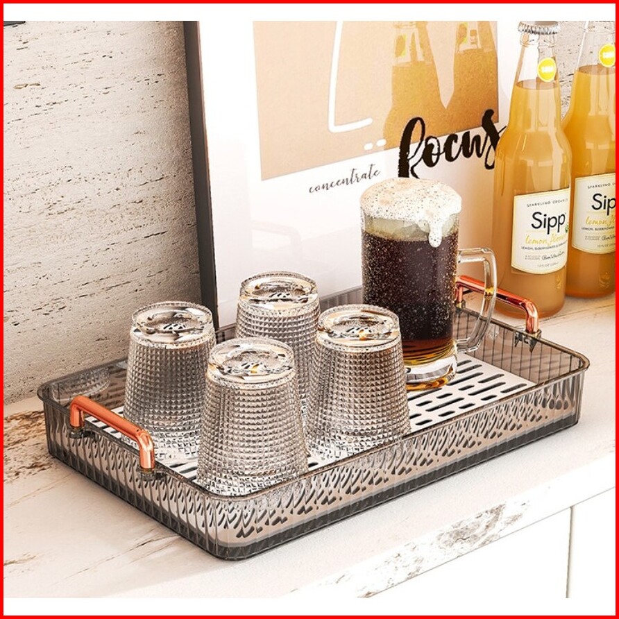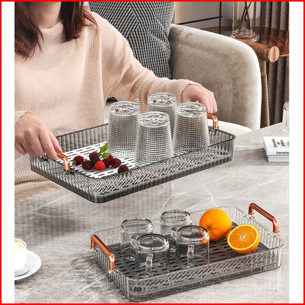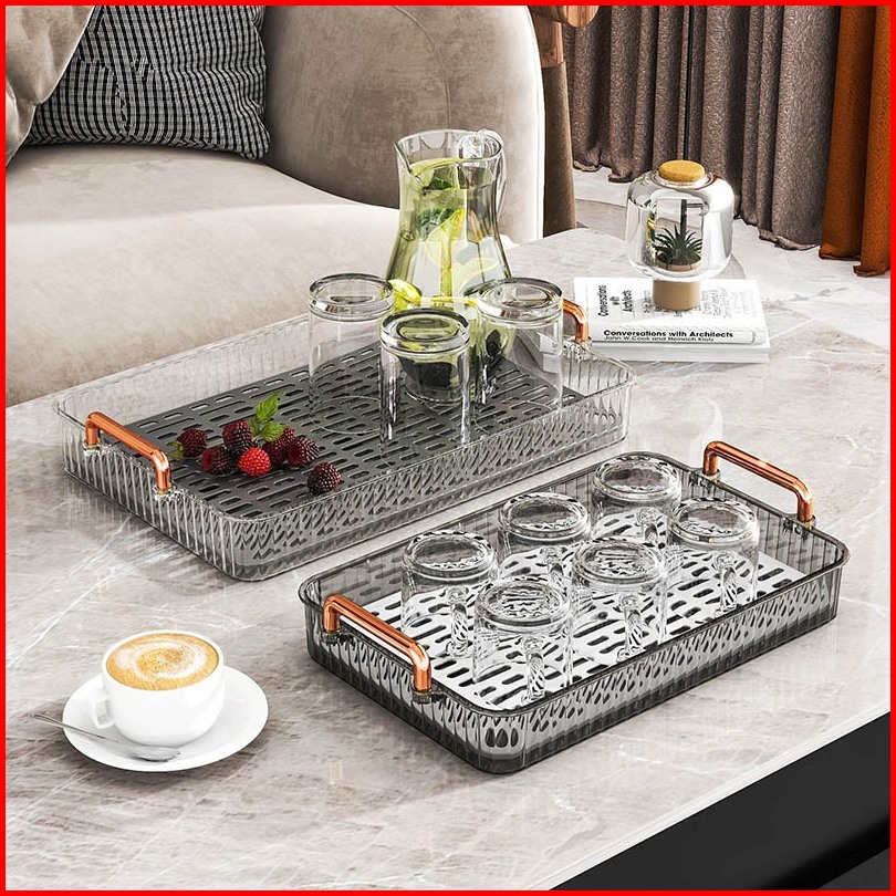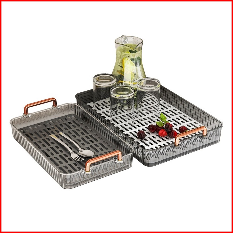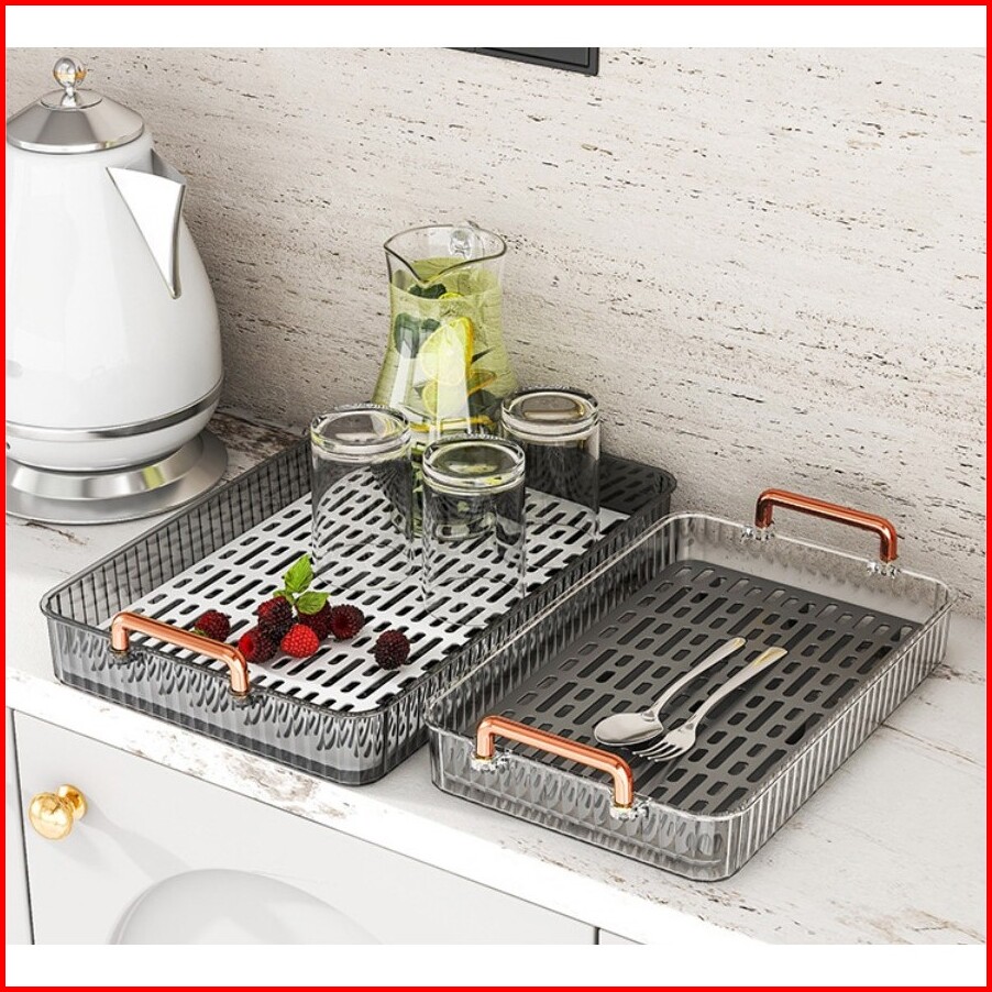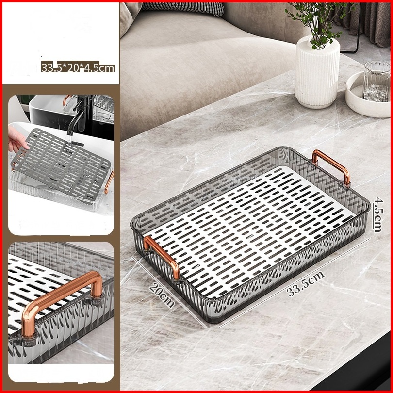 Nampan Plastik Aesthetic Transparan Baki Serbaguna Dengan Pengering
