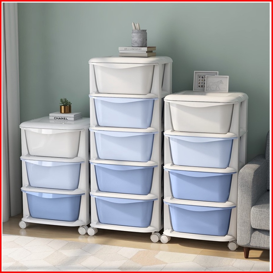 Lemari Pakaian Plastik Susun Kotak Penyimpanan Baju Serbaguna Beroda