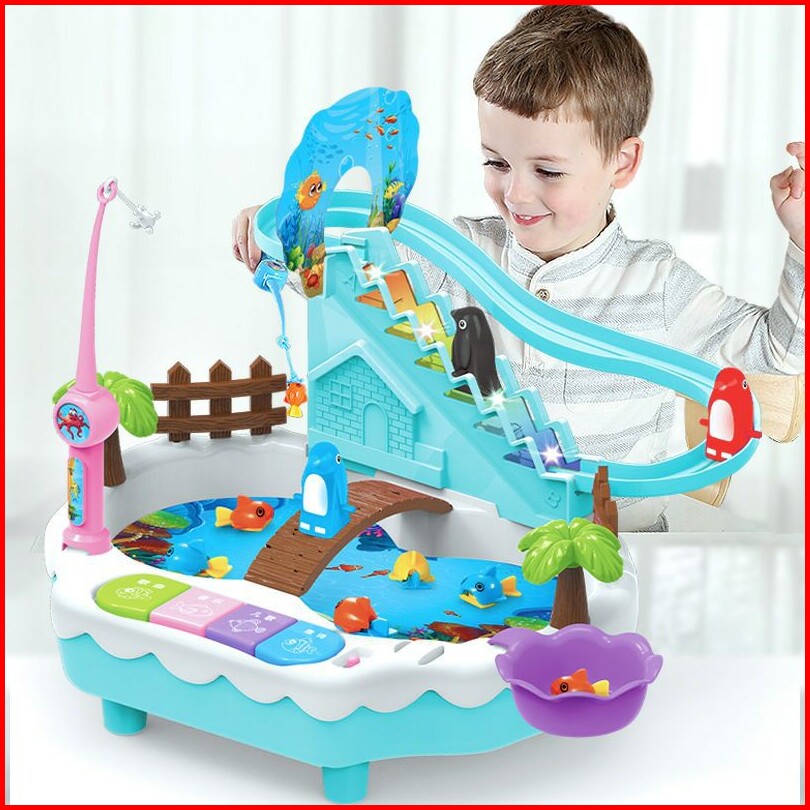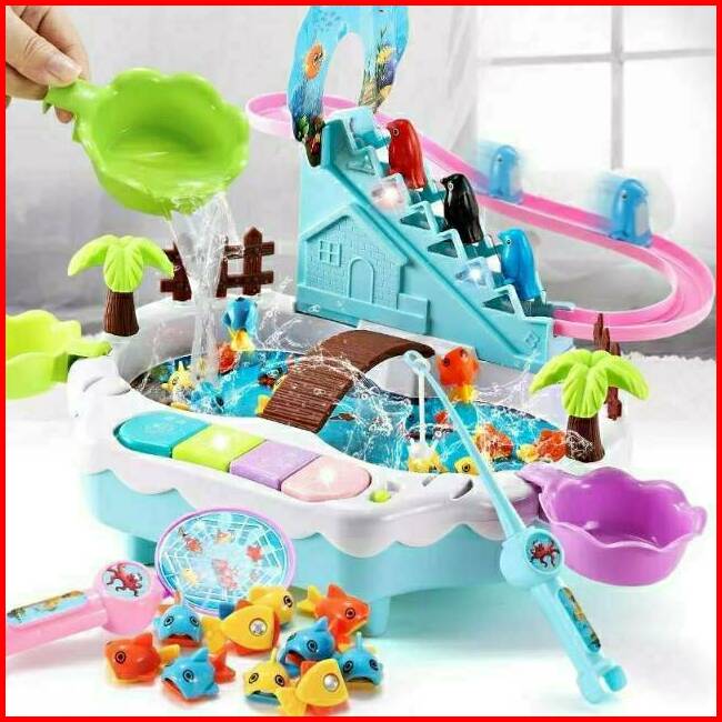 Tma Mainan Anak 2 In 1 Pancingan Ikan Magnet Kombi Track Racers Penguin