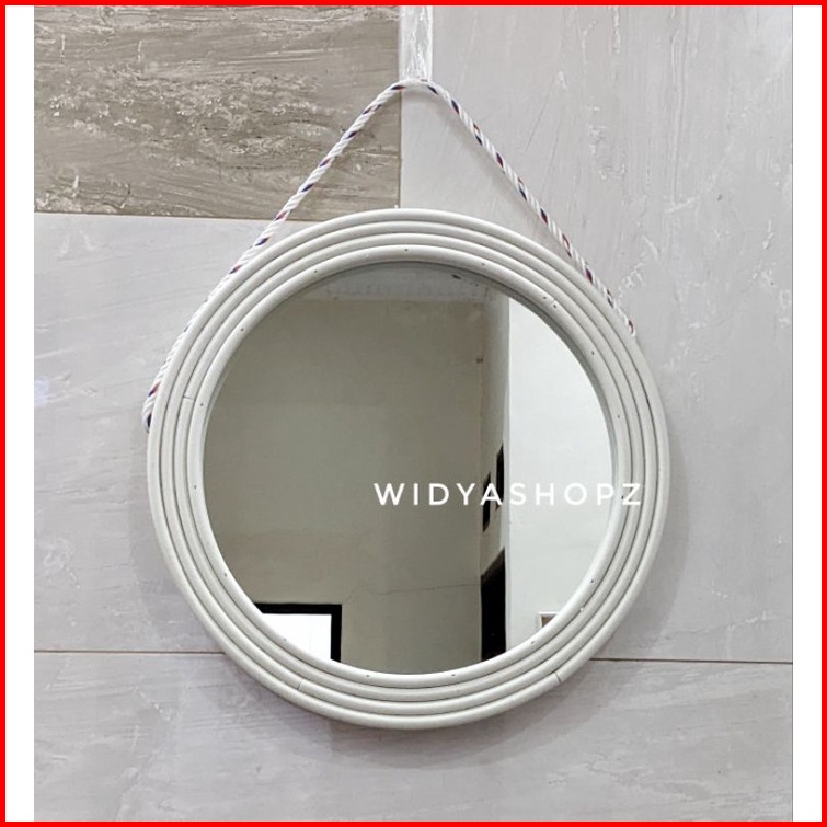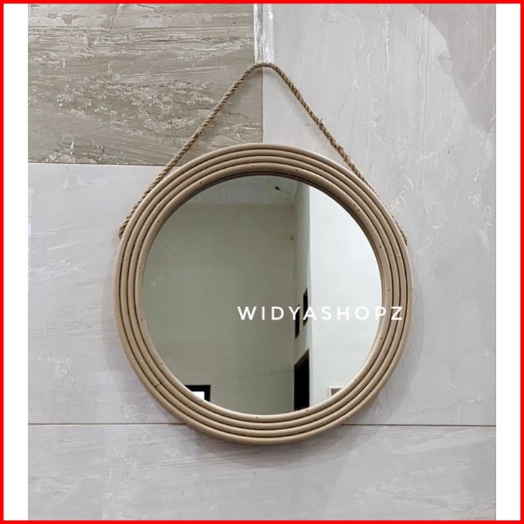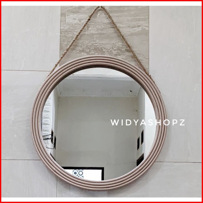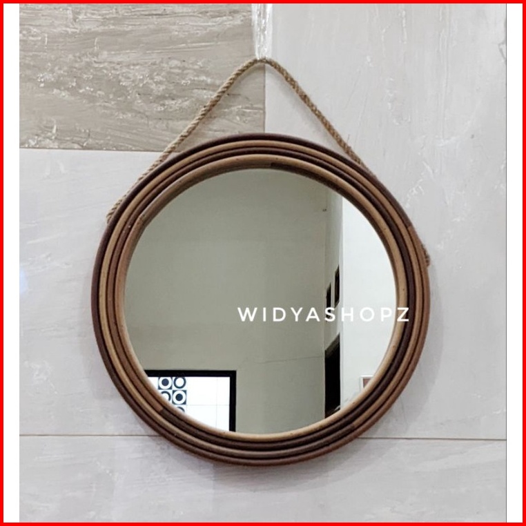 Cermin Kaca Rotan Sintetis Hiasan Dinding Ruang Tamu Kerajinan Tangan Estetik
