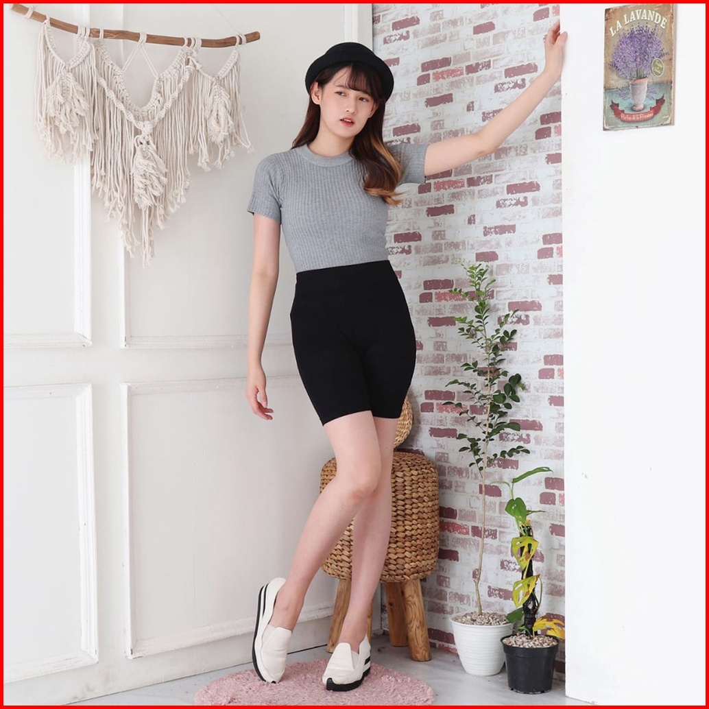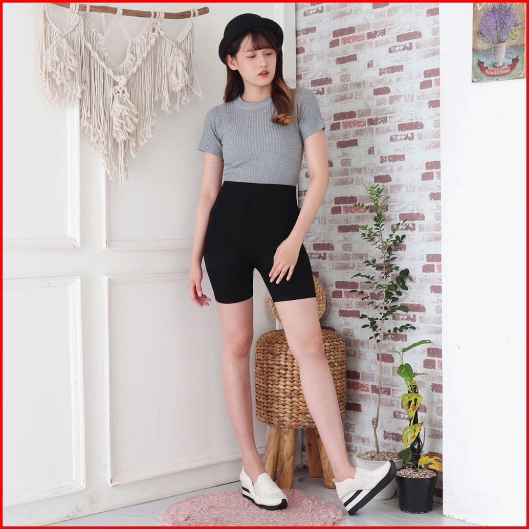 Haymeeidn - Celana Legging Basic Tebal Pendek Short Leging Pants Highwaist