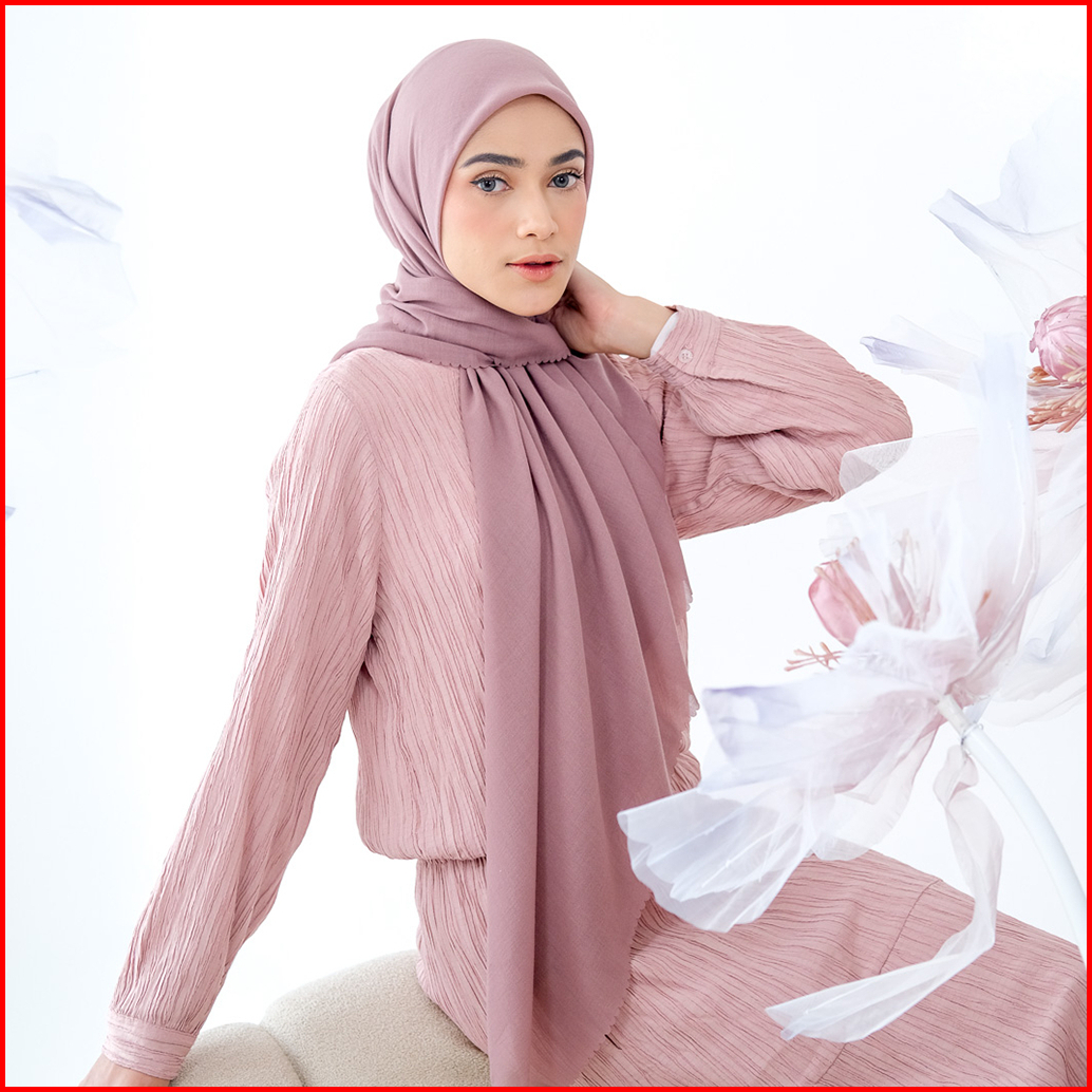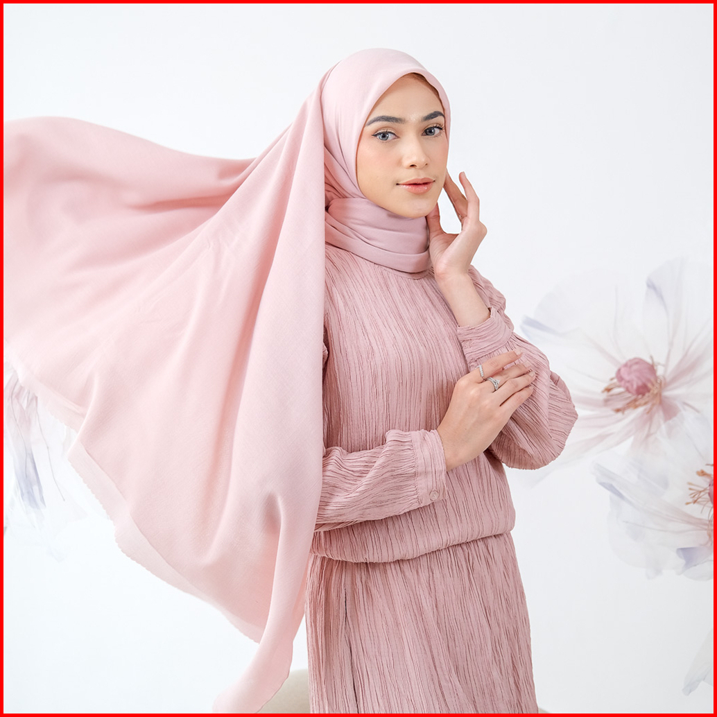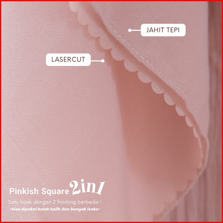 Pinkish - Pinkish Square Hijab Segi Empat Voal 2in1 Lasercut Dan Jahit Tepi