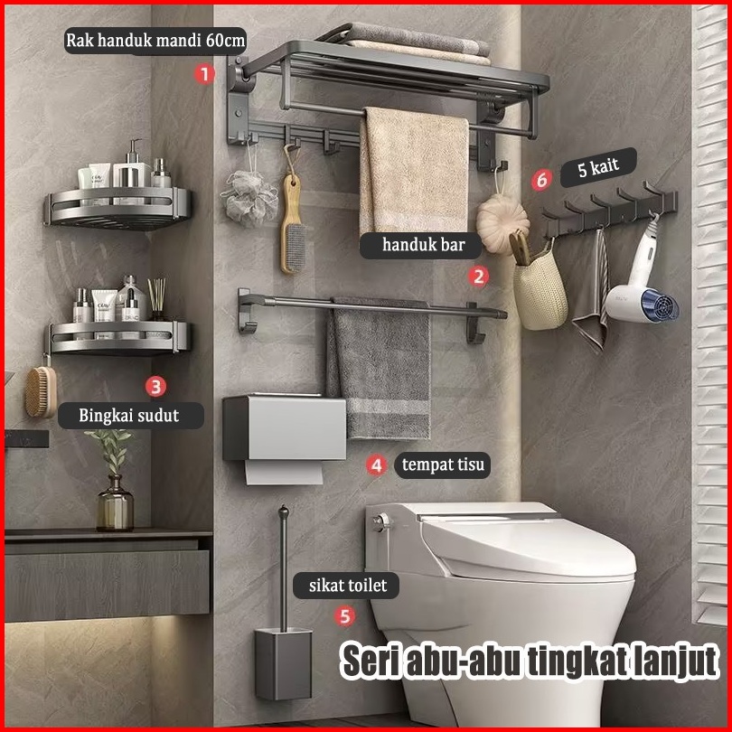 Versi standar-50cm, Versi standar-60cm, Model mewah 50cm, Model mewah 60cm, Model mewah 70cm, Model upgrade 60cm, Rak pojok*2, rak persegi*2, 5 kait, 6 kait, Kait siluman 5, Kait siluman 6, Rak sabun A, Rak sabun B, Tempat sikat gigi-2, Tempat sikat gigi-3, Tempat sikat gigi-4, Tempat handuk kertas, Tempat tisu deluxe, tempat tisu, tempat sikat toilet, Rak handuk 50cm, Rak handuk 60cm, Rak handuk mewah50cm, Rak handuk mewah60cm, Rak handuk mewah70cm, Rak penyimpanan 40cm, Rak penyimpanan 50cm