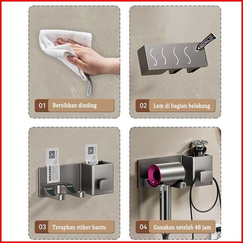 Rak Kamar Mandi Rak Blower Sisir Penyimpanan Anti Air Anti Karat Tanpa Pengeboran