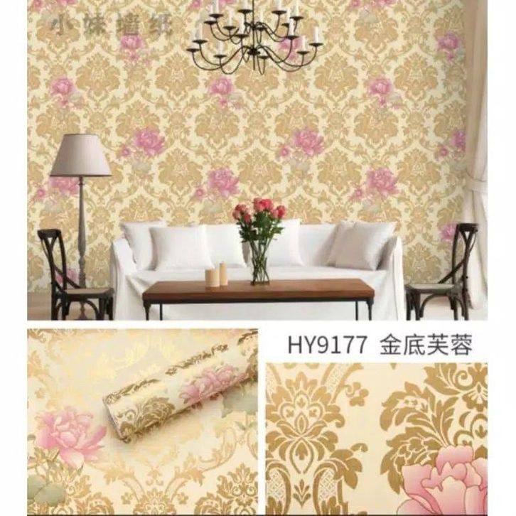 WALLPAPER STIKER DINDING BATIK GOLD ROSE PINK WALLPAPER DINDING WALLPAPER DINDING ROLL