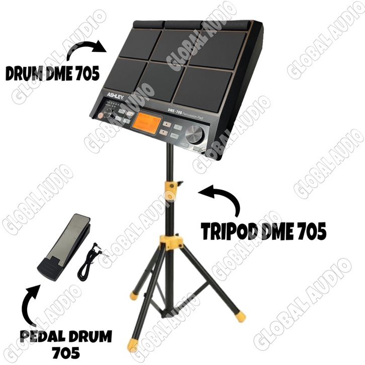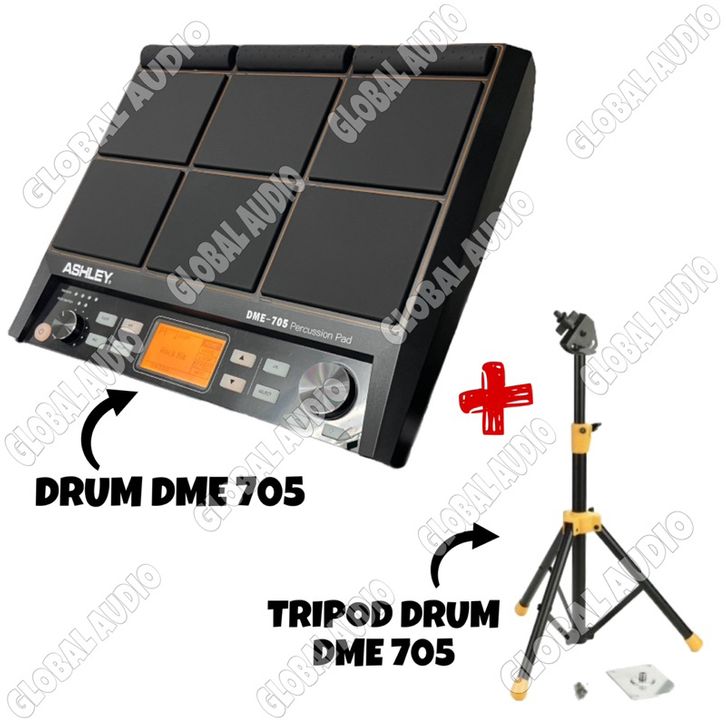 Drum Electrik Ashley DME 705 plus Tripod , Pedal Drum Dme705 Full paket Original ashley Drum705