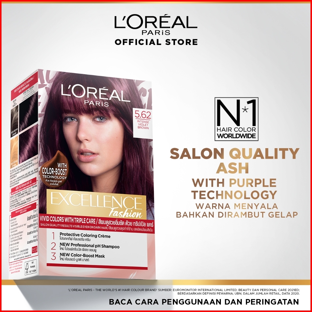 L Oreal Paris Excellence Fashion Sparkling Visible Hair Color 5.62 Intense Violet Brown - Cat Rambut Pewarna Rambut Perm