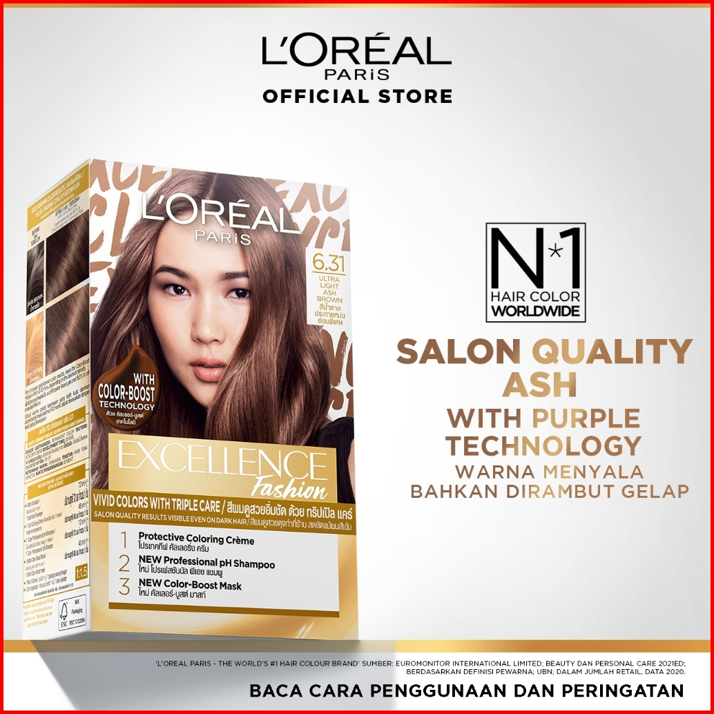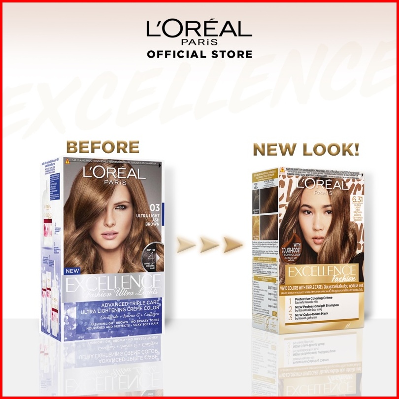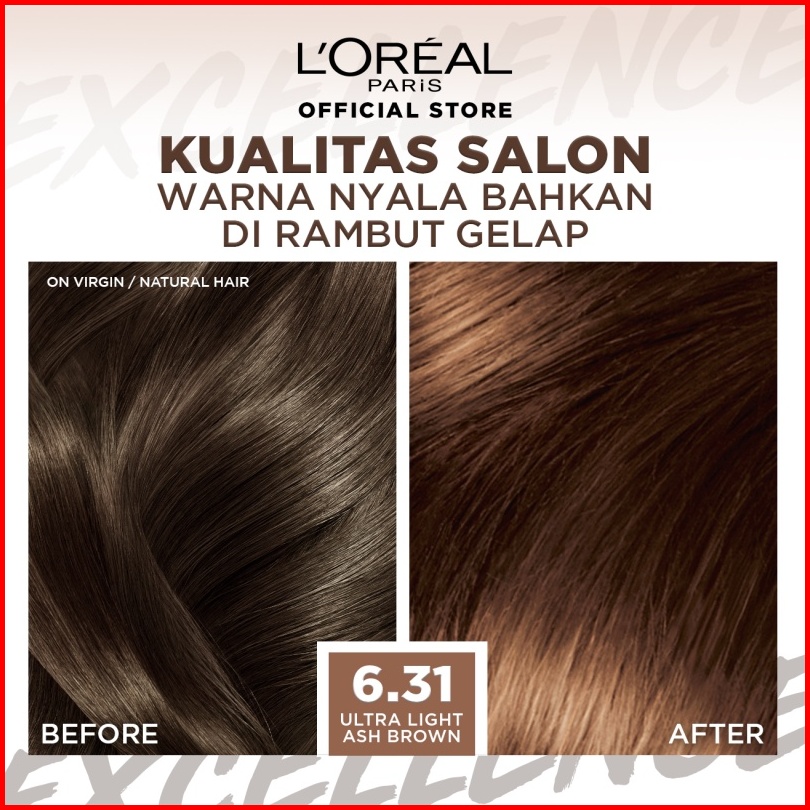 L Oreal Paris Excellence Fashion Ultra Light Advance Ultra Care Cat Pewarna Rambut Permanen - Excellence Fashion 6.31