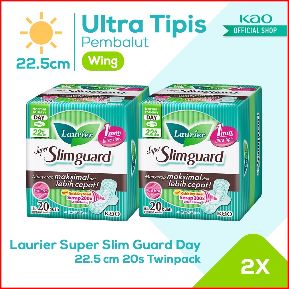 Laurier Super Slimguard Pembalut Wanita Day Slim Breathable 22.5cm Wing Menyerap Maksimal Dan Lebih Cepat Isi 20 Buah Tw
