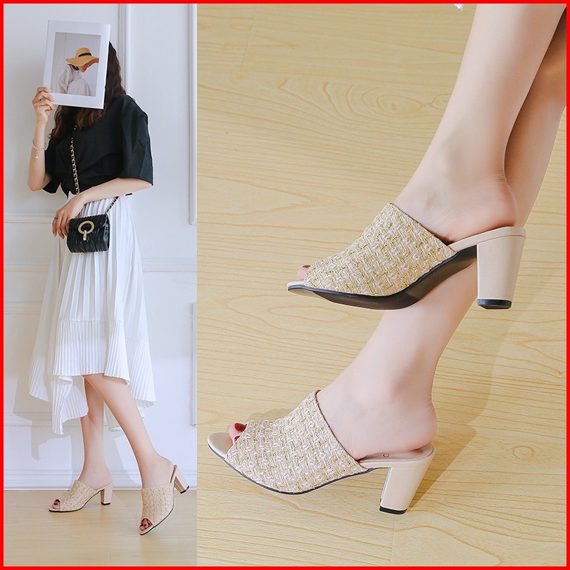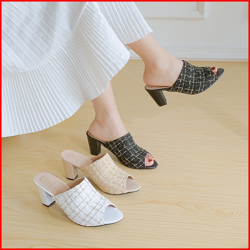 Coline Cln-578 Tweed Heels Hak Chuncky C1110