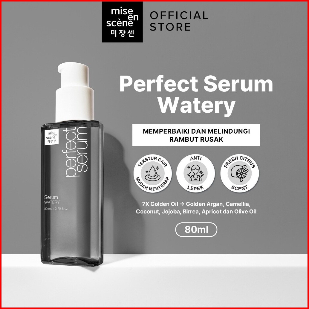 Mise En Scene Perfect Serum Watery 80ml - Hair Serum Untuk Rambut Rusak Tekstur Cair Aman Lepek Berminyak Dengan Golden