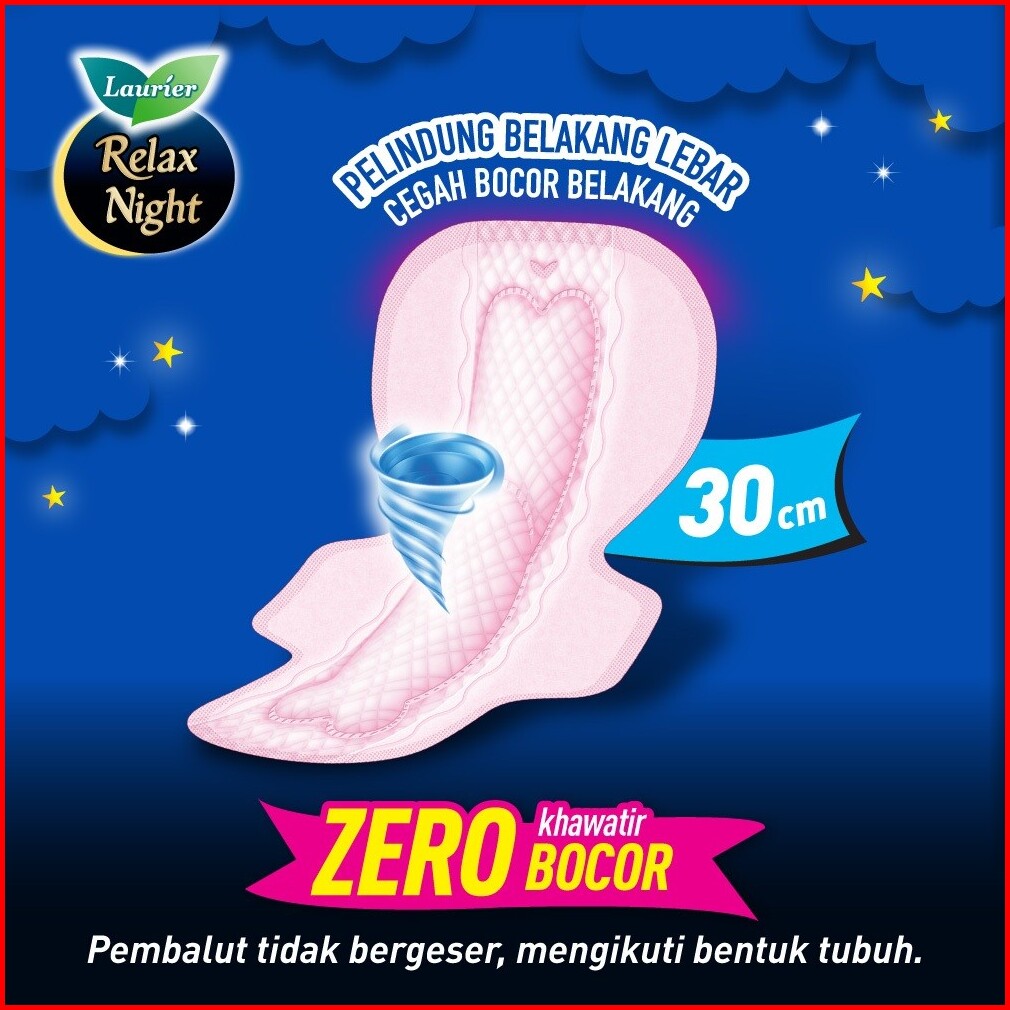 Laurier Relax Night Pembalut Wanita Malam Panjang 35cm Wing Perlindungan Tidur Bebas Bocor Semalaman Isi 18 Buah Twin Pa